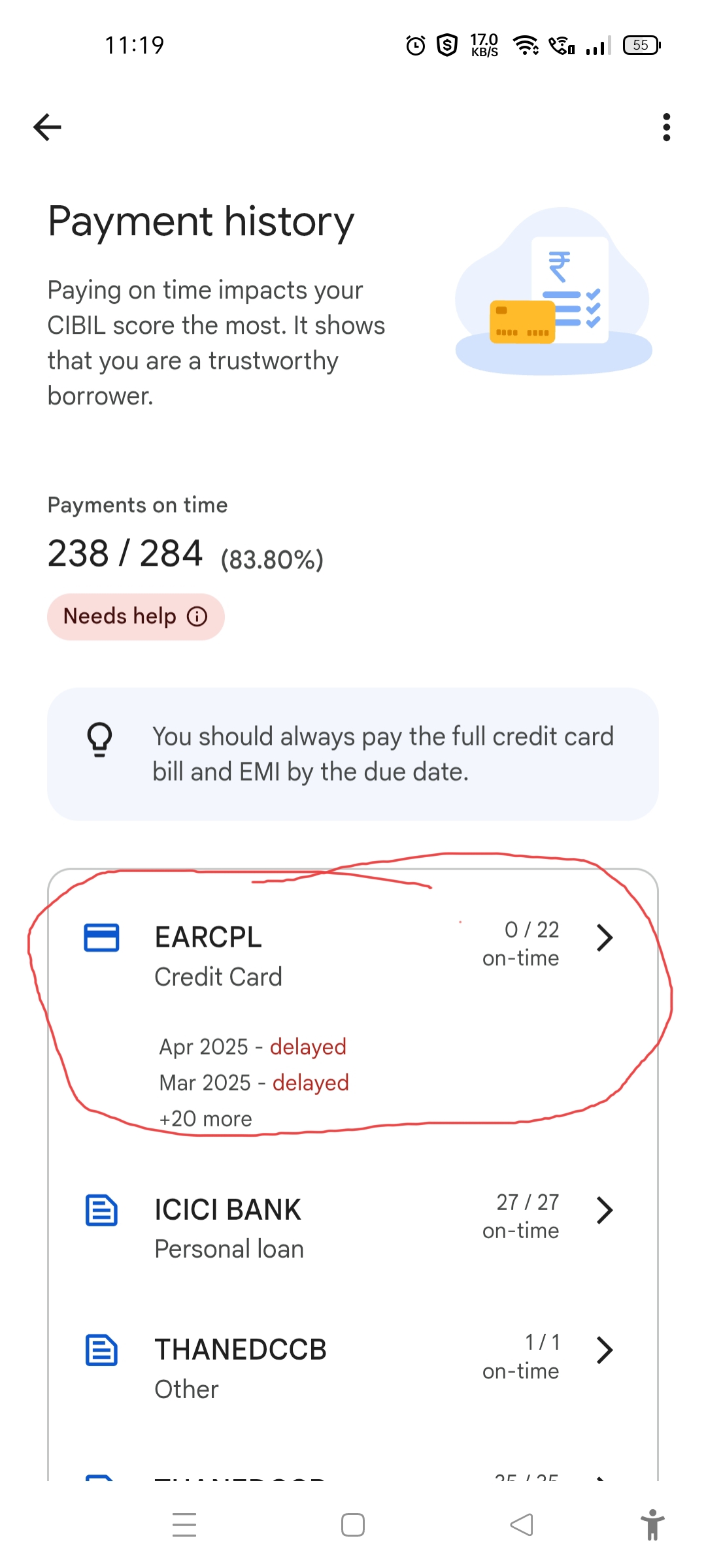 | Name(s) of companies complained against | Earcpl credit card |