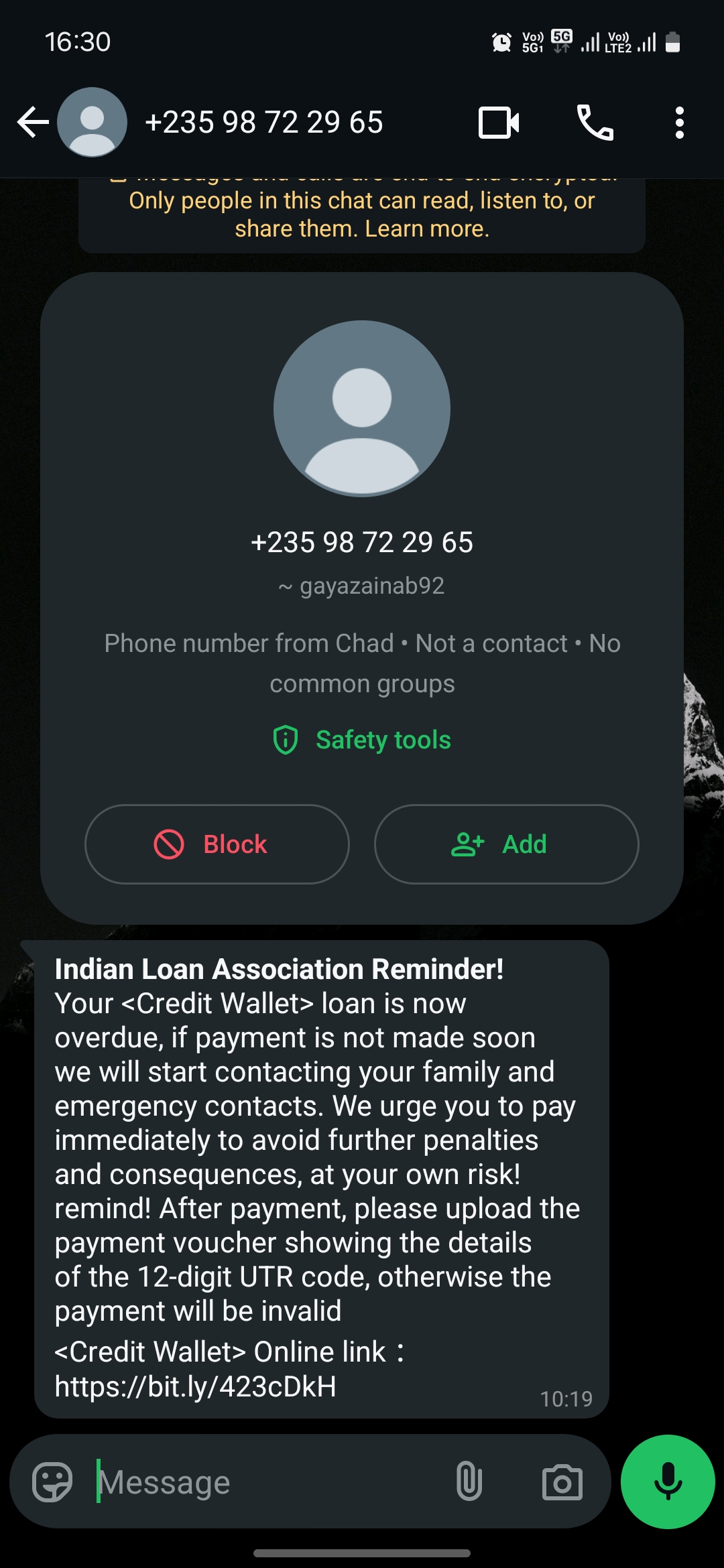 I never took the loan from credit wallet but it shows that you take 3000 loan on credit wallet and send me the whatsapp message that pay the amount or we’ll call your family and parents.