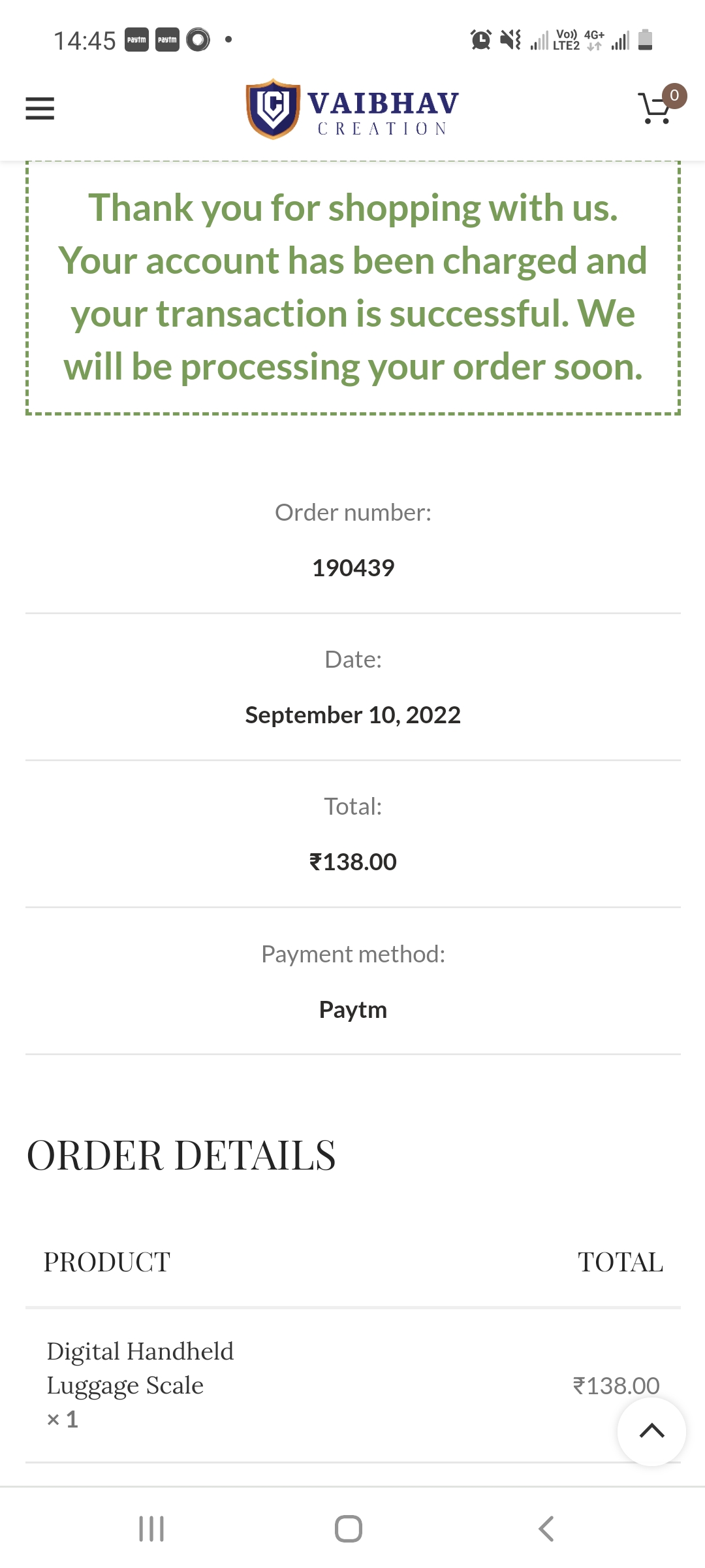 Nayankumar Ashokkumar Pandya, I have ordered from Vaibhav Creation online and didn’t receive any updates and my order since last 10 days. Can’t get in touch with company and feels like I am deceived