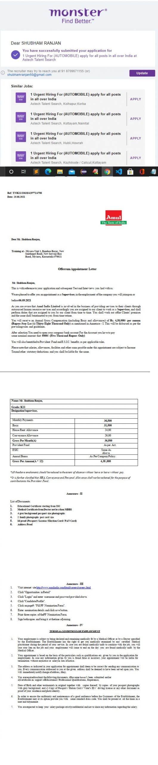 She sends this Selection Letter with letter pad Amul India Ltd. through the mail (amulindialtd.1@gmail.com)