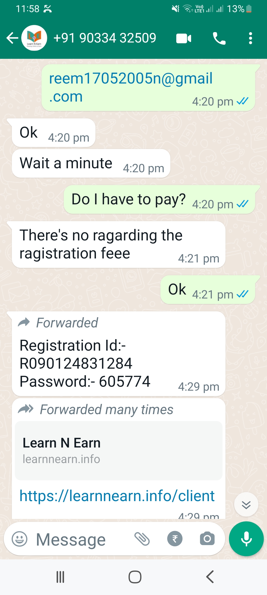 I was looking for part time jobs from home to earn some extra cash on quickr jobs when I saw their ad and applied. I messaged them on WhatsApp and they told me it’s a site to learn free extra talents and also earn. I asked them upfront if there is any payment before or after registration and they said there is no payment so I registered. About 3 weeks later I got an email saying I have 5999 +18 % gst to be payed as fees for their service which I haven’t payed yet. They said if I don’t they will take legal action. I’ve got proof of them saying there is no fee or payment and it’s absolutely free and then later asking for payment. The scam is so big that I have seen so many others complain about this scamming. They are trying to rip you off in the name of free education. I haven’t payed them any money yet and they are already harassing me with calls. Please take legal action as fast as possible.