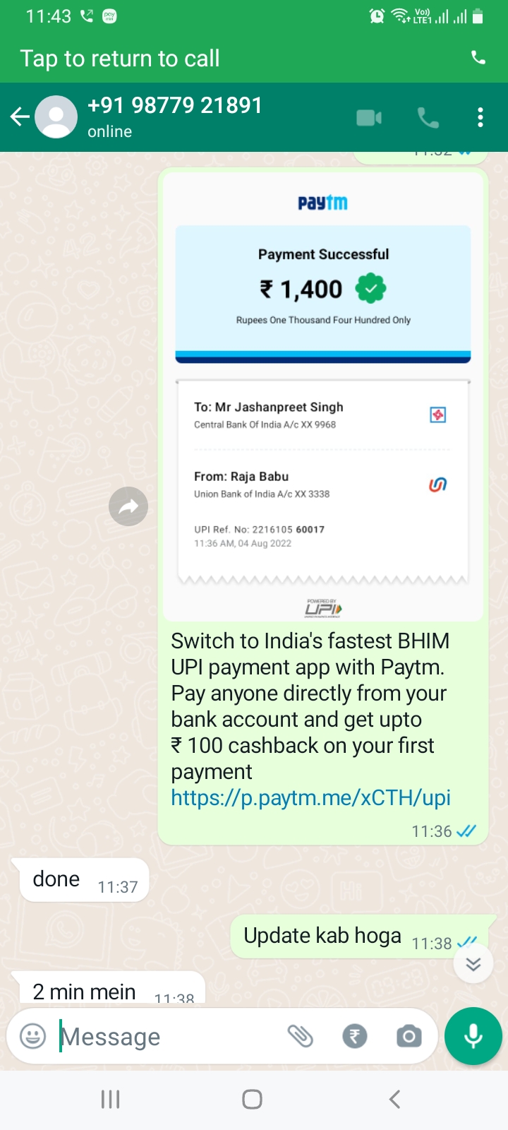 I have taken a loan from Buddy cash. It’s period was of 7 days. Even before the end of loan period, they just started calling and texting me on Whatsapp. They literally abused me, my family and all. They asked me to pay the loan. They only sent me the link to pay. I paid the loan. But, after payment, they stopped communicating and I got to know that my payment was not updated in the app. So, all the money, I paid, was paid to fraud. They sent me literally all the contact details of my contacts. They have my every information. They threatened me to call all my contacts and tell them that I have rapped someone. They threatened me like this . I got scared and made payment on the upi They sent me. All this was fraud. I got suciedal thought. They harassed me.