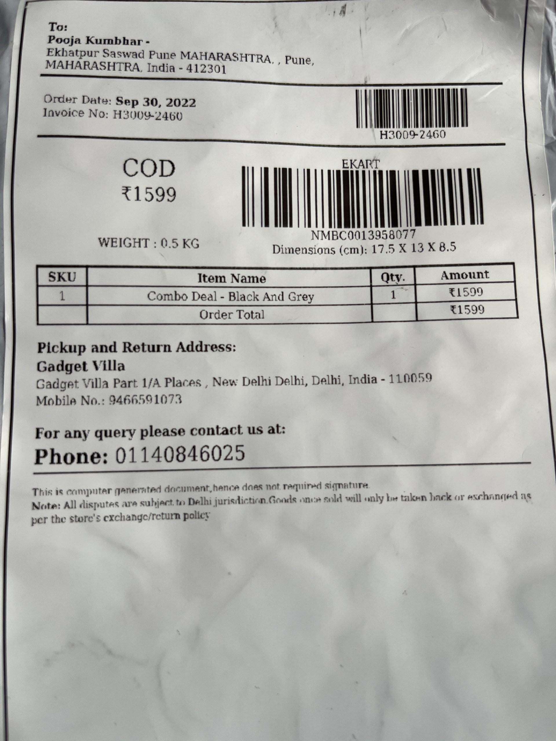 I had ordered the headphones from Gadget villa website..but the one I ordered did not come and some other wrong item has come.Now I am trying to send the thing back to him on that number which is shown in parcel for return so that number is not getting call.And there is no contact, so I would like to take action on this website.