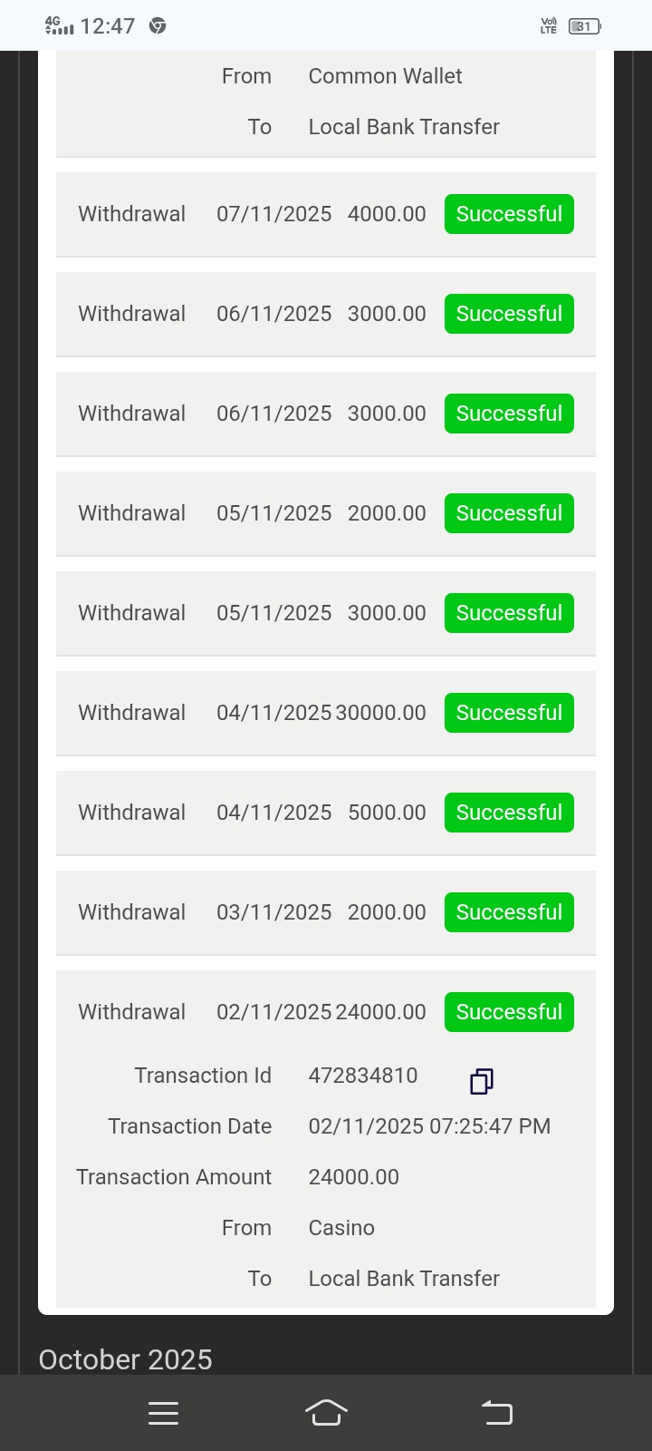 I have requested for withdrawal on dafabet casino amount 24000 INR in dafabet casino details to transfer the amount which is showing successfully processed