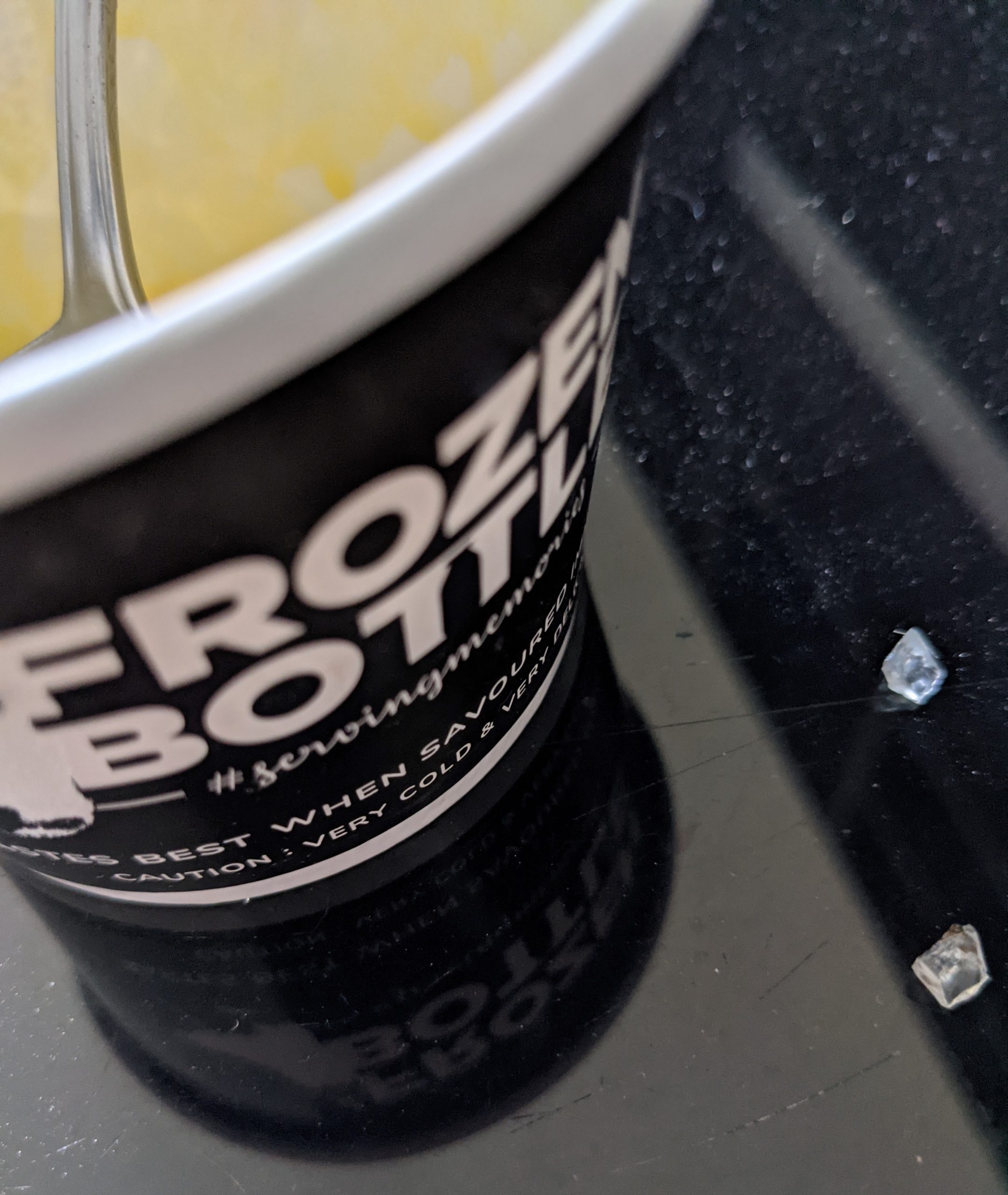 Vide my order number 2925692437, I had ordered ice-cream through Zomato food delivery services from the restaurant Frozen Bottle. The Alphonso Mango Ice-cream has two pieces of glass and I cut my mouth when I took a spoonful with a piece of glass in it.