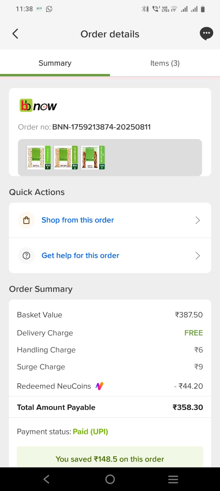 I would like to bring to your attention that I placed an order for groceries through the Big Basket application on August 11th. The payment was successfully made; however, the order was subsequently cancelled by the operator. As of now, I have not received the refund credited back to my account.