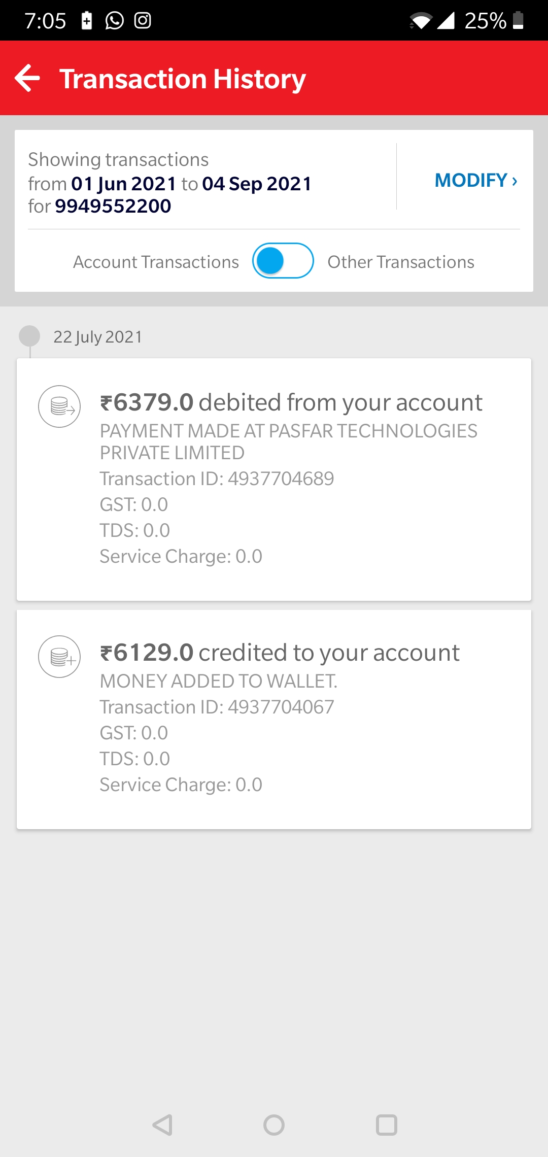 On July 22,2021, my credir card was debited by 6129 for purchase of 6379 thro Pasfar. Please give details of the transaction and for what product etc