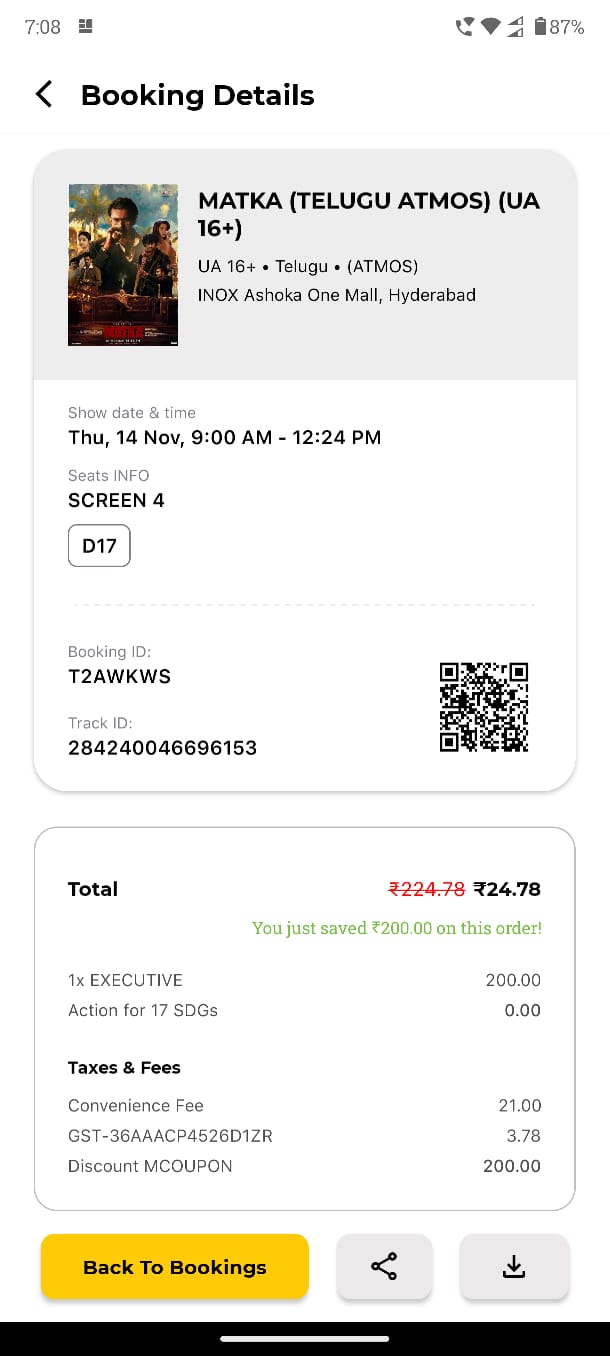 I’ve been booked a ticket for a movie in PVR Ashoka malla Hyd on 14th of November at 9am but when we entered the mall the staff said that the movie was delayed for 20 mins but they repeated the same for nearly 2 hours. After that the manager said movie was cancelled because of distribution issues but they said that it’s because of technical error and this type of incident was 2nd time in this mall. Within 1 hour I raised a complaint about this through mail and twitter even their response was very late to me in the both it’s been nearly 14 days still they didn’t processed my refund please help me on this.