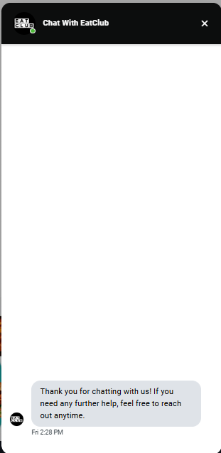 I have been facing repeated delays with my food orders placed through Eat Club, and no reasons or updates are provided about the delays. When I try to contact customer support, the in-app chat does not allow me to type messages. It only shows automated responses, making it impossible to raise my concern. Additionally, there is no customer helpline number available on the app or website. This leaves customers completely helpless when service issues arise. I request Eat Club to ensure timely delivery, provide proper communication in case of delays, and fix the customer support system by enabling real-time chat or providing a helpline number.