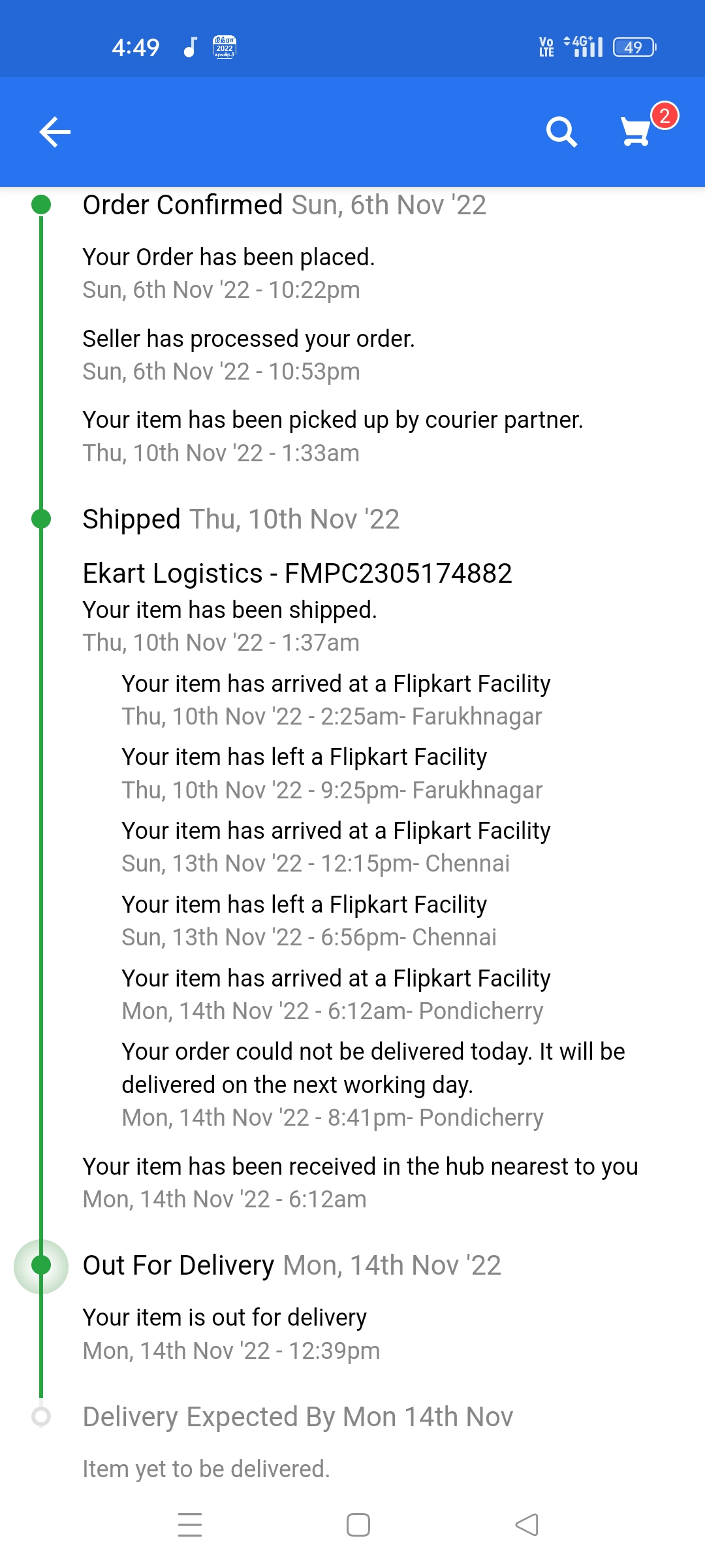 of tamilnadu to pondycherry worst delivery only Flipkart