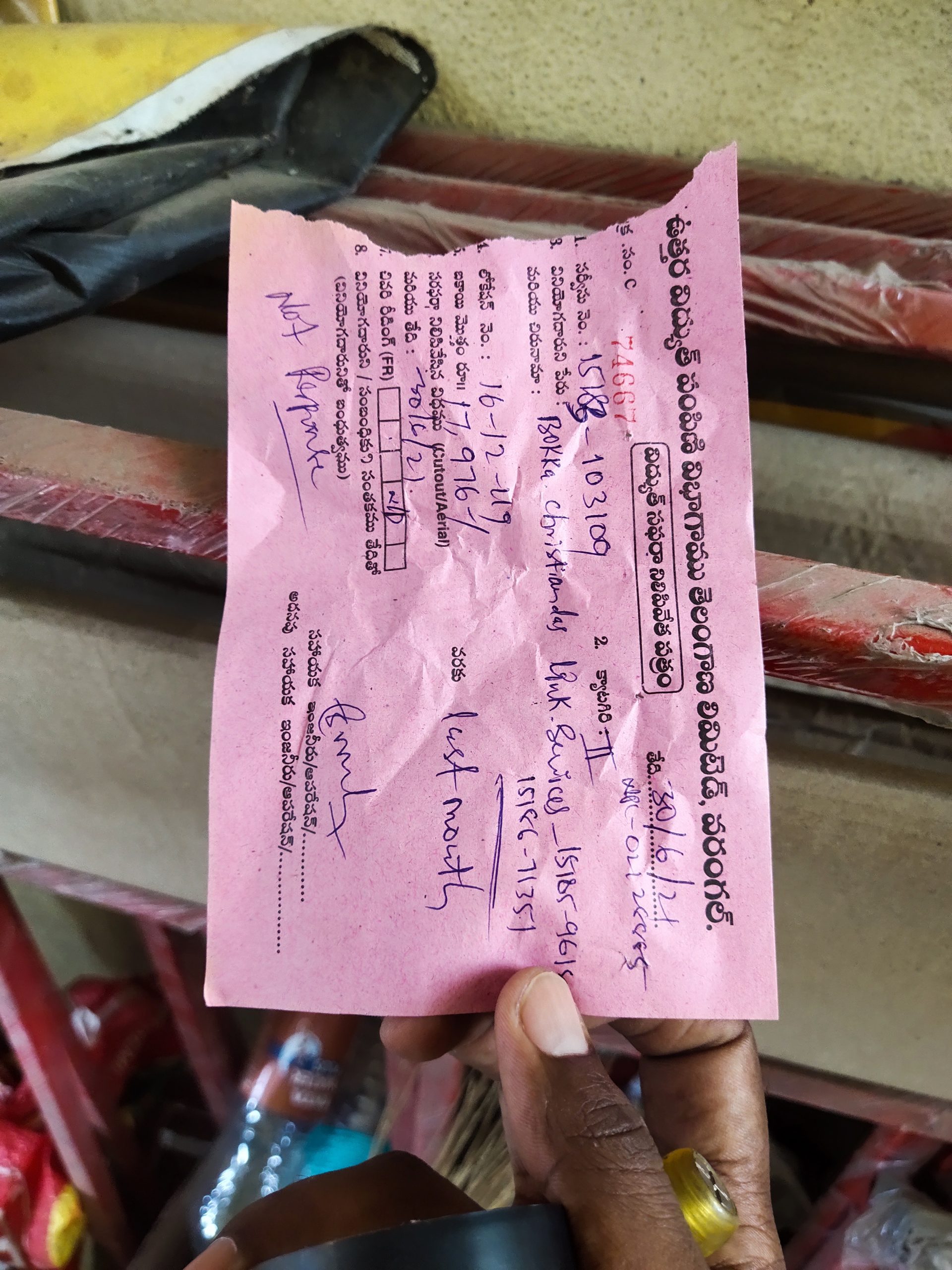 Fraudulent meter details: Service number: 15183-103109, name: Bokka Christinadas…