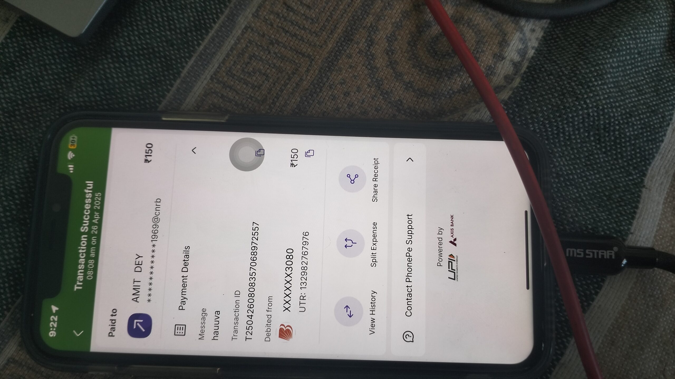 I have deposited 150 rs in my bdg account 2630879 order I’d is RC2025042608121333562057a