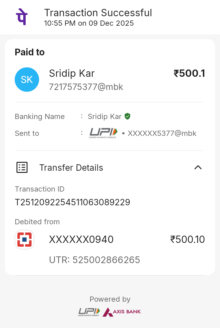 Upi holder name :Sridip kar