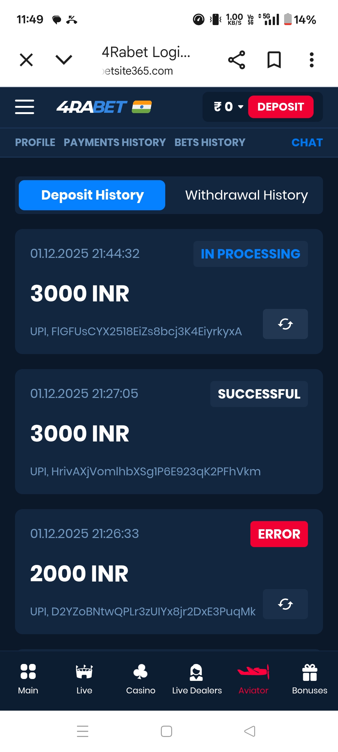 मैंने दिनांक 01-12-2025 को 4Rabet में ₹3000 की राशि Paytm के माध्यम से जमा की थी, जिसकी ट्रांजैक्शन आईडी 295998073883 है।