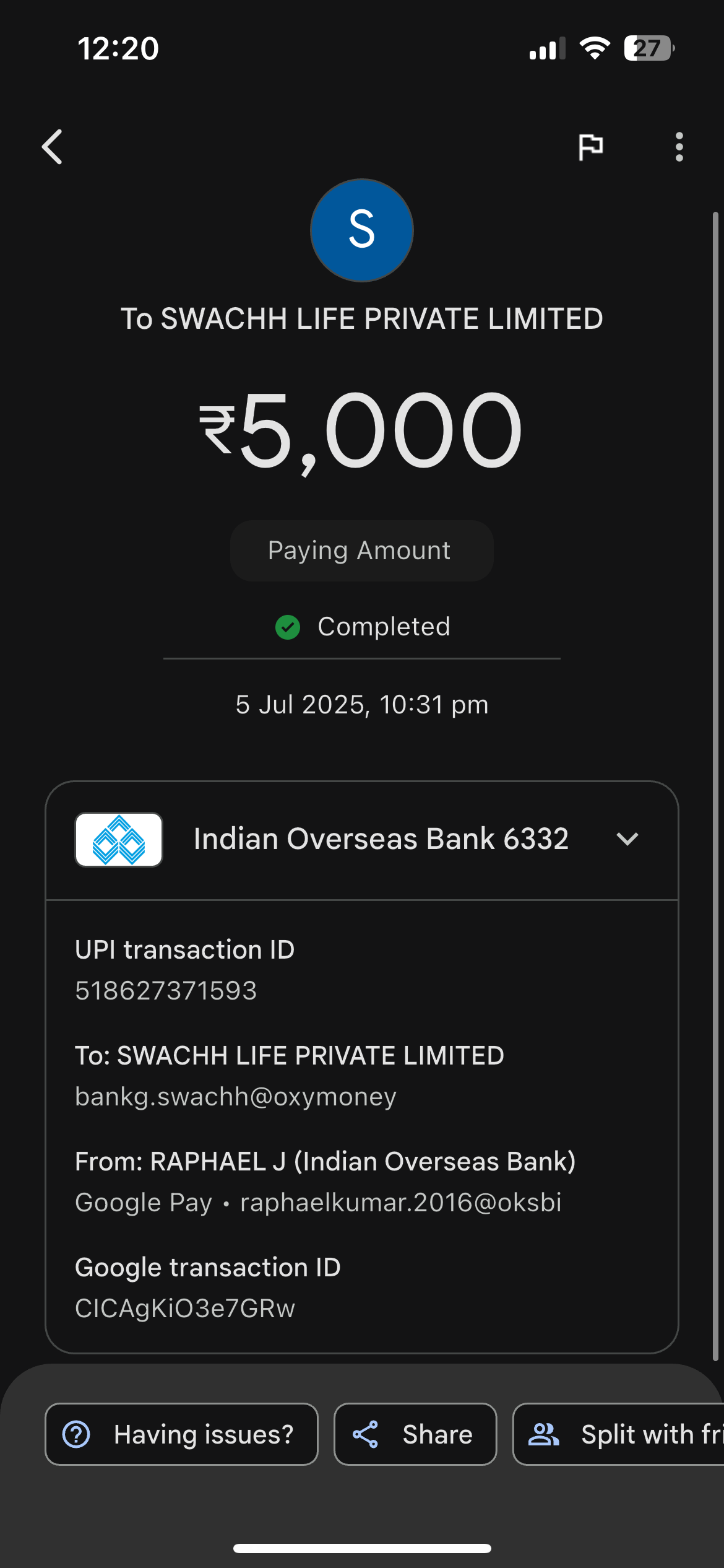 I deposited twice in the Dafabet account of 5000 each but reflecting only once.