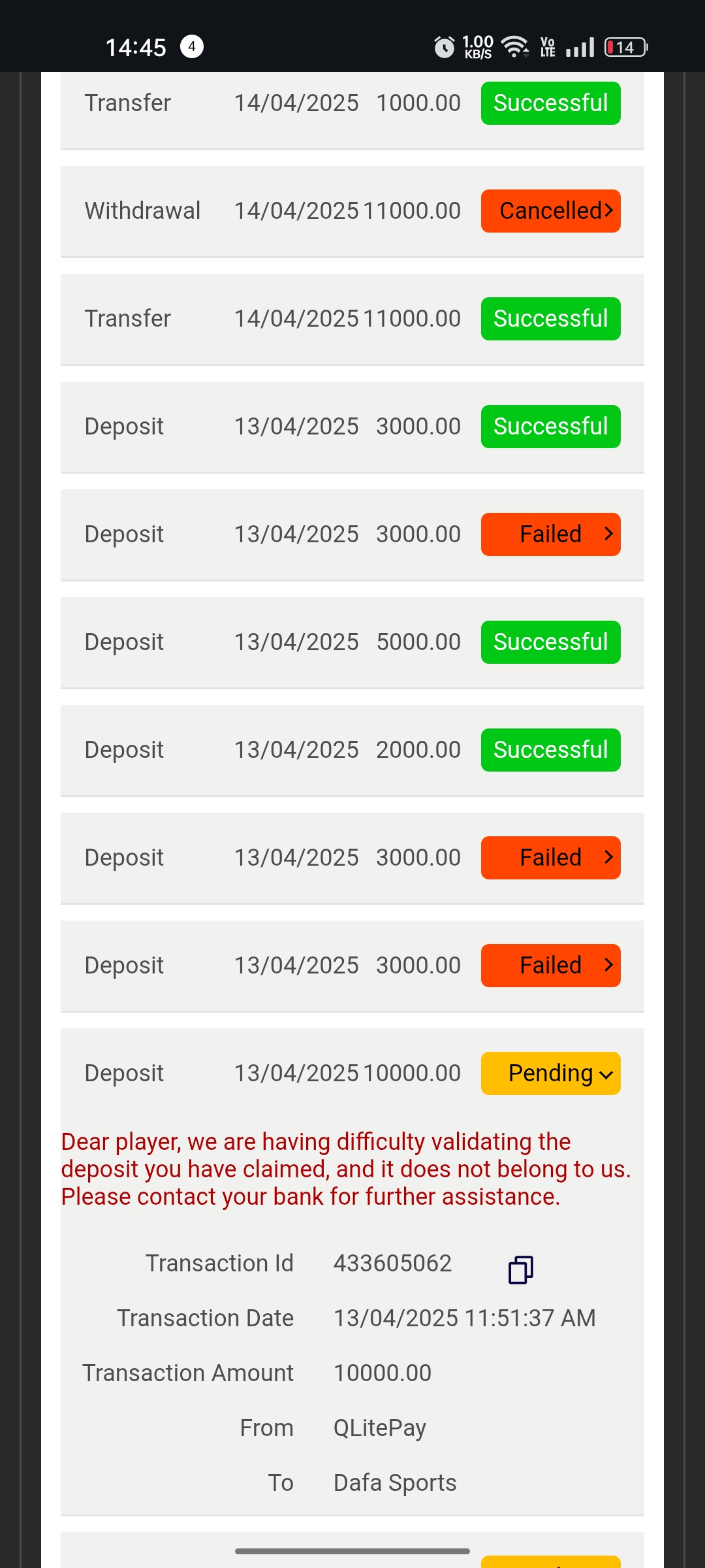 Dafabet is a online betting app. I have deposited 13000 in two transactions but the transaction amount was not credited to my dafabet account.then I called and messaged them for the resolution they are telling the amount was not yet secured it’s been 3 months since iam waiting there is no resolution I have called my bank they said already the transaction was successful and received by the receiver bank too.