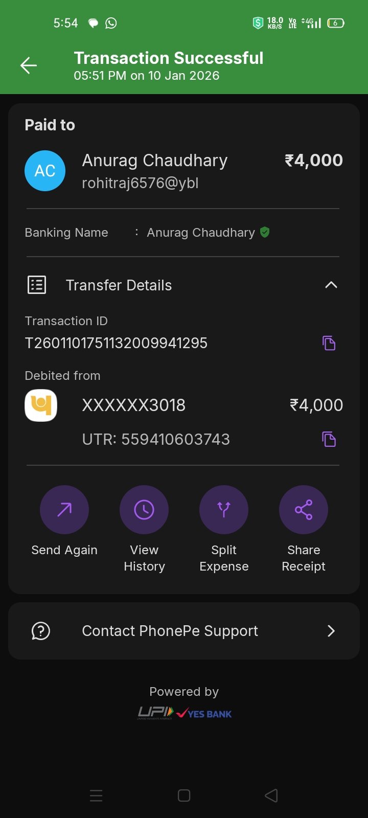 deposited ₹10,000 into my BateryBet account using UPI via PhonePe. The payment was successful, but the amount was not credited to my BateryBet wallet.