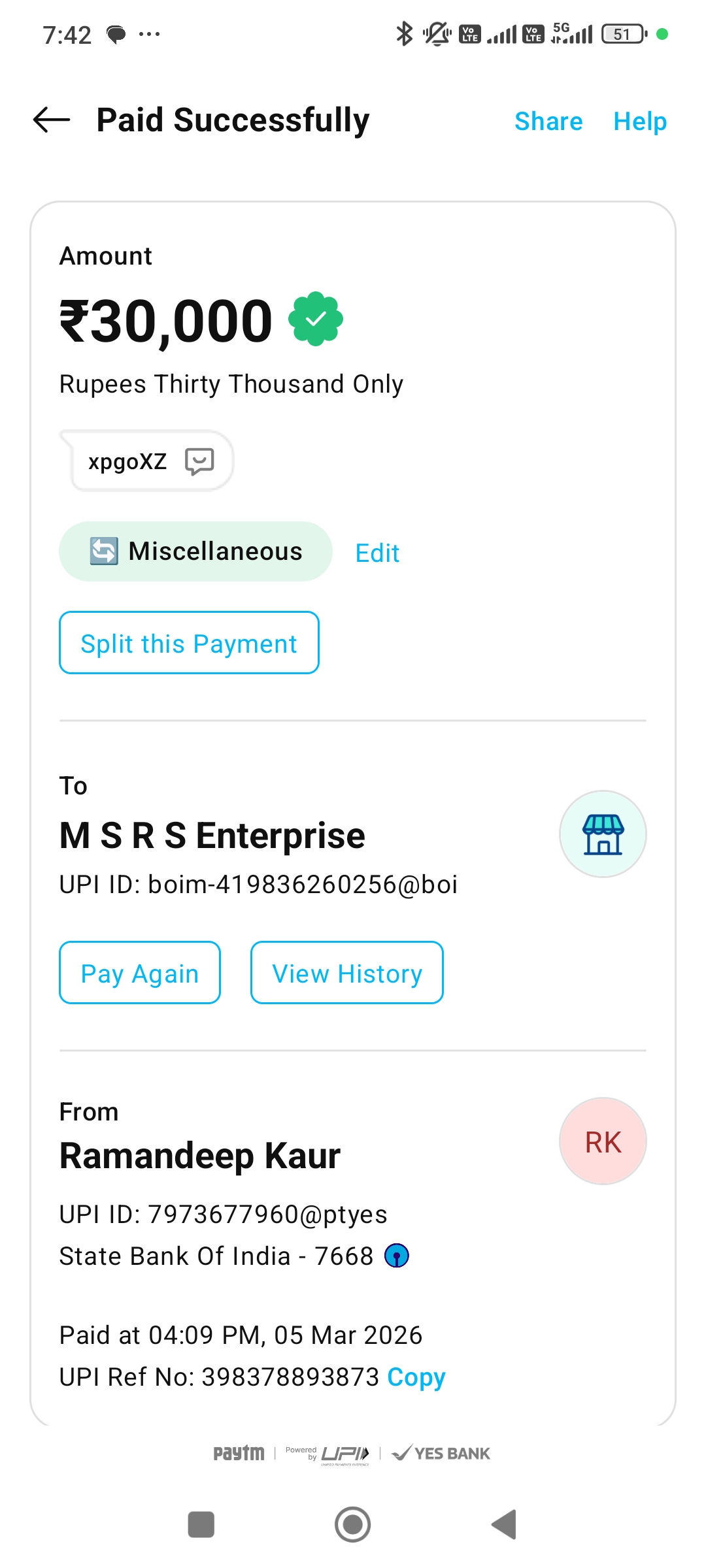 I do deposit 30 k 5 march 2026 still doesn’t recieved