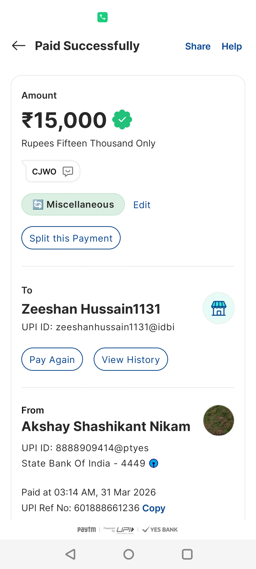 I deposited 15000 inr on dt 31.03.2024 at 3.13 am but till date that money not received in my wallet