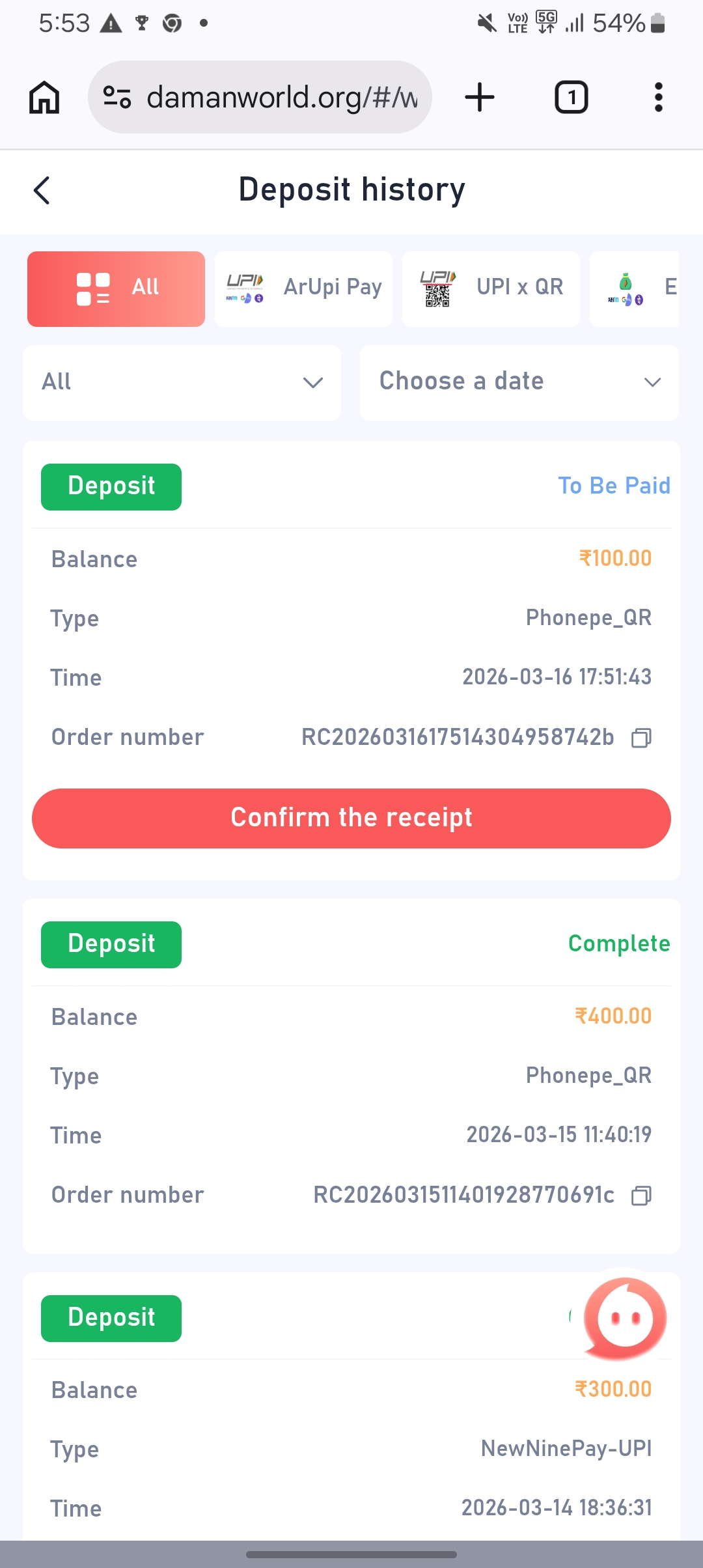 100 deposit not recive