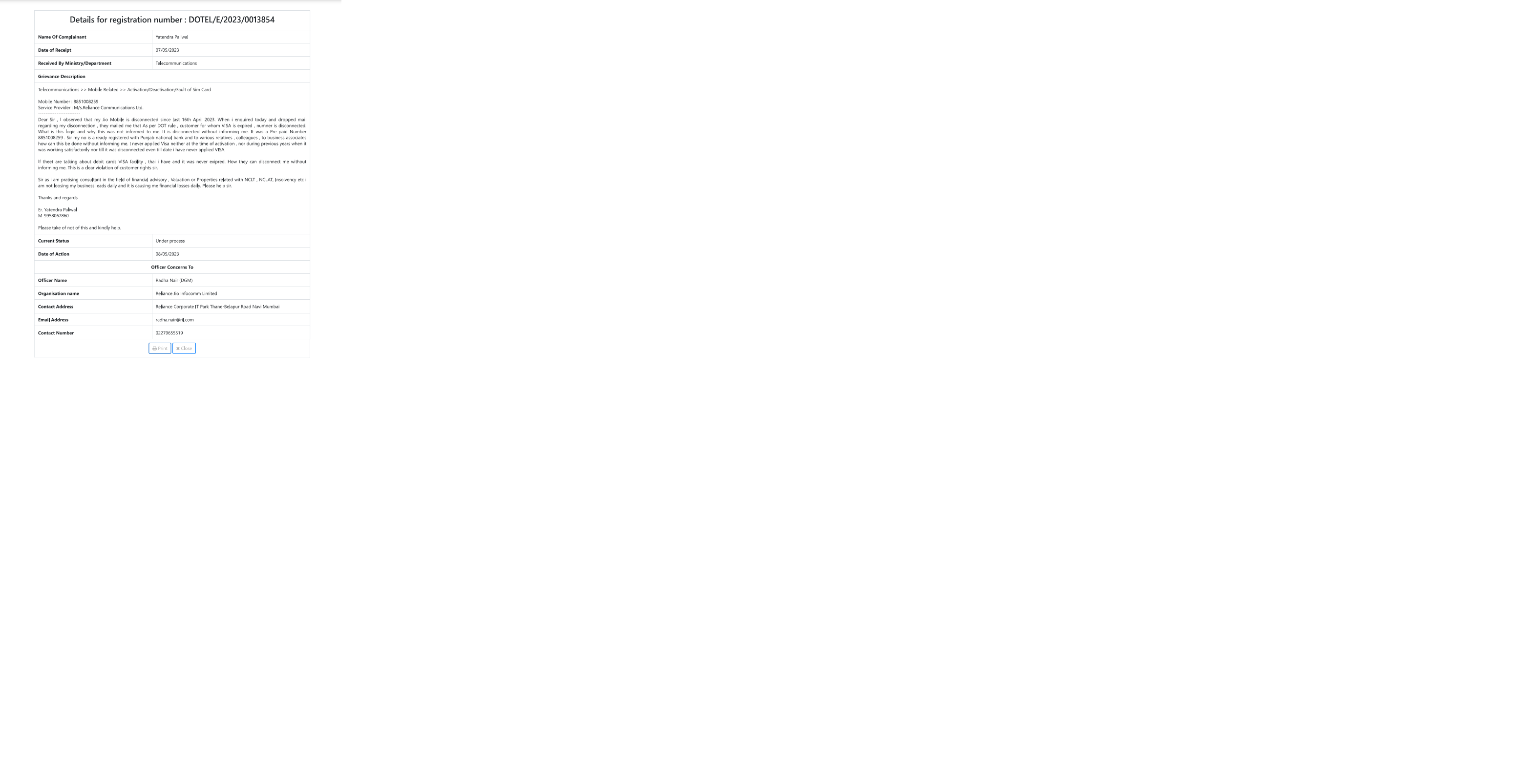 Now there are not answering me satisfacotirily and every time a new person from Jio care is submitting the answer. Sometimes they say it is due to VISA expire but no body explains which VISA is expired. Sometimes they say document are incomplete but then why this mob no was working since last 3 years. Sometimes they say that there received instruction to disconnect from Department of telecommunication but they are not providing that copy of instruction. Please help