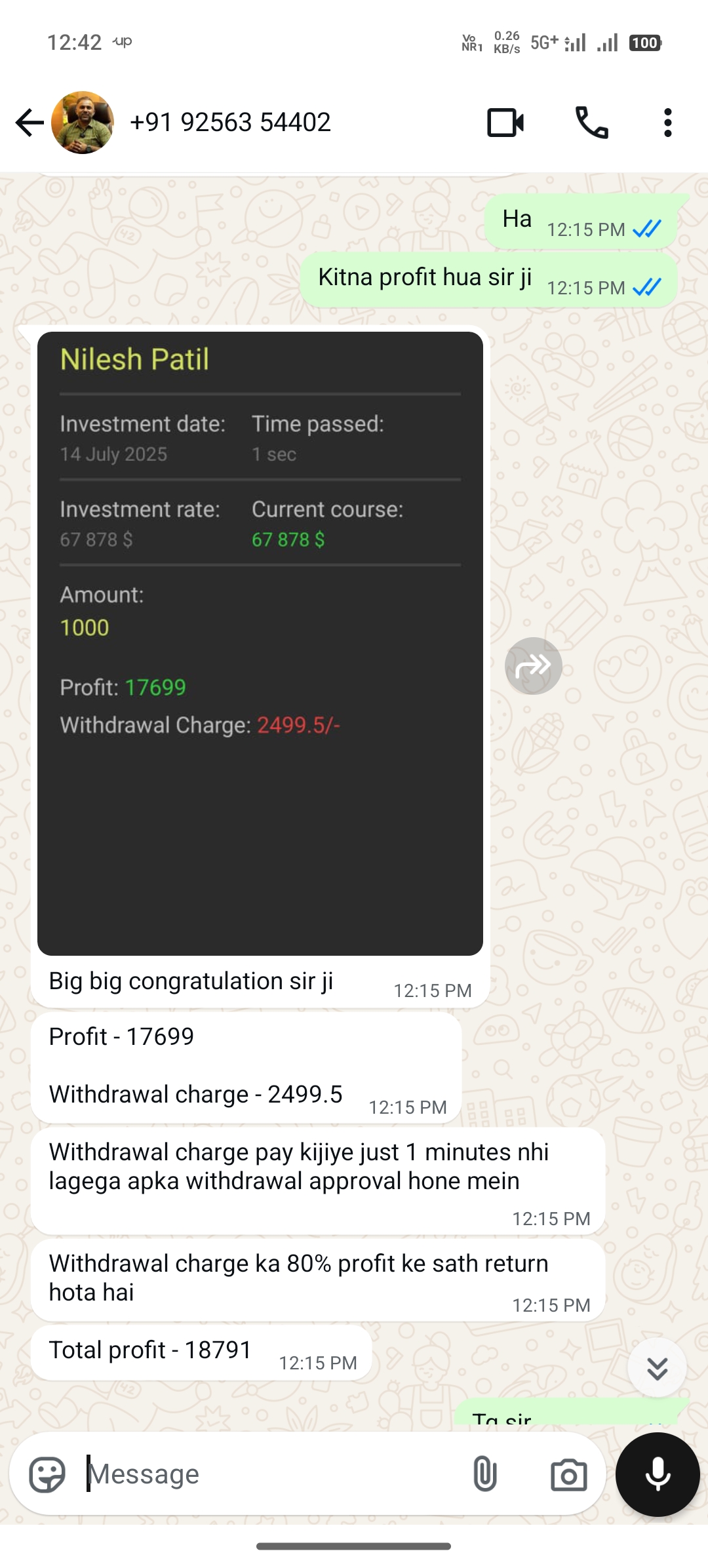 The person has told to give only 1000 and in return he will give me 17699. But he asking me withdrawal charge 2499.5 rs