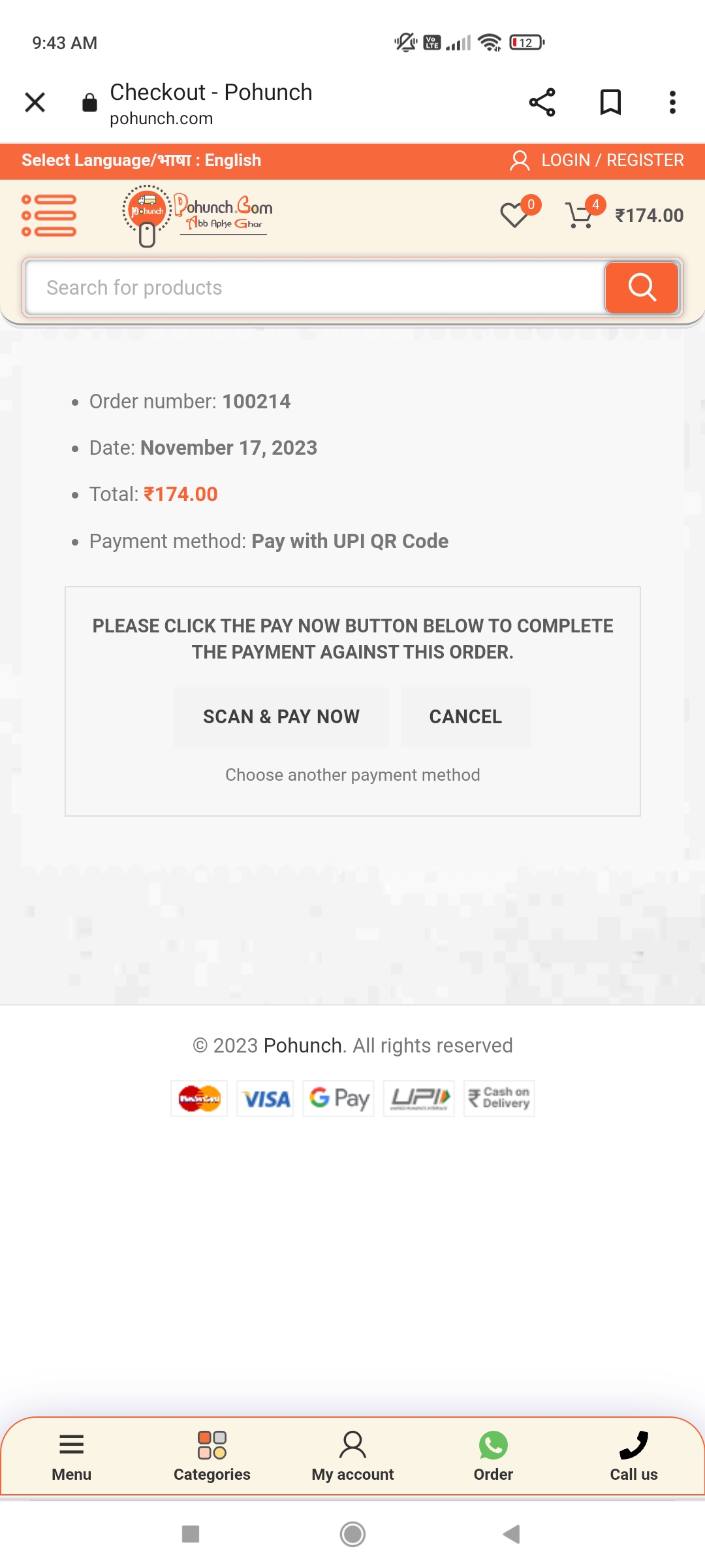 Ordered products worth ₹174 on 17th November even after confirmation of payment no response, whether it’s their customer care, whatsapp or email no response from any of those.