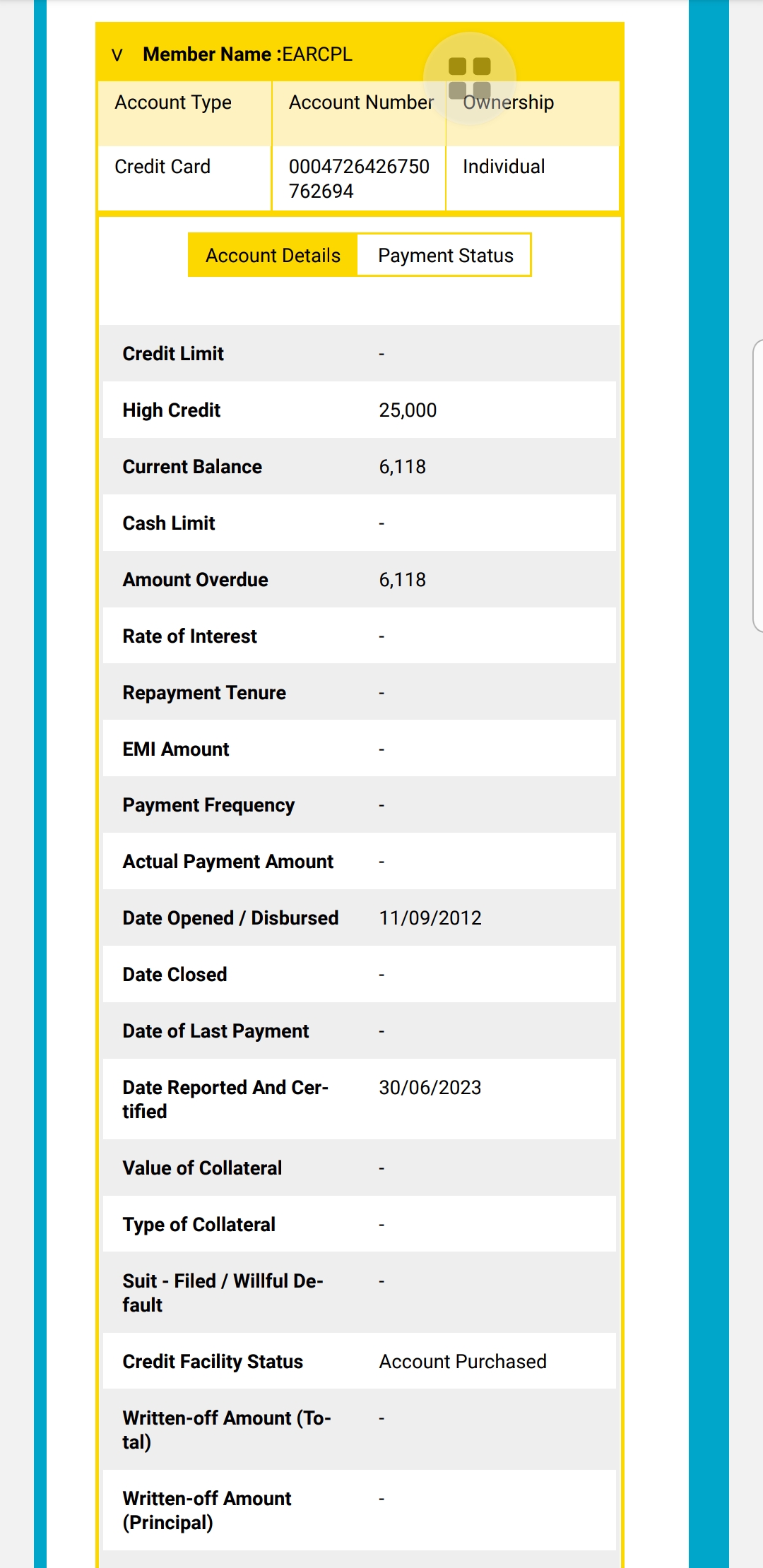 I am not using any kind of EPRCPL credit card but it’s showing my cibil. My cibil score is very down due to unpaid EPRCPL credit card amount =6150/- aprox so please remove this amount to my acount so my cibil is improve.