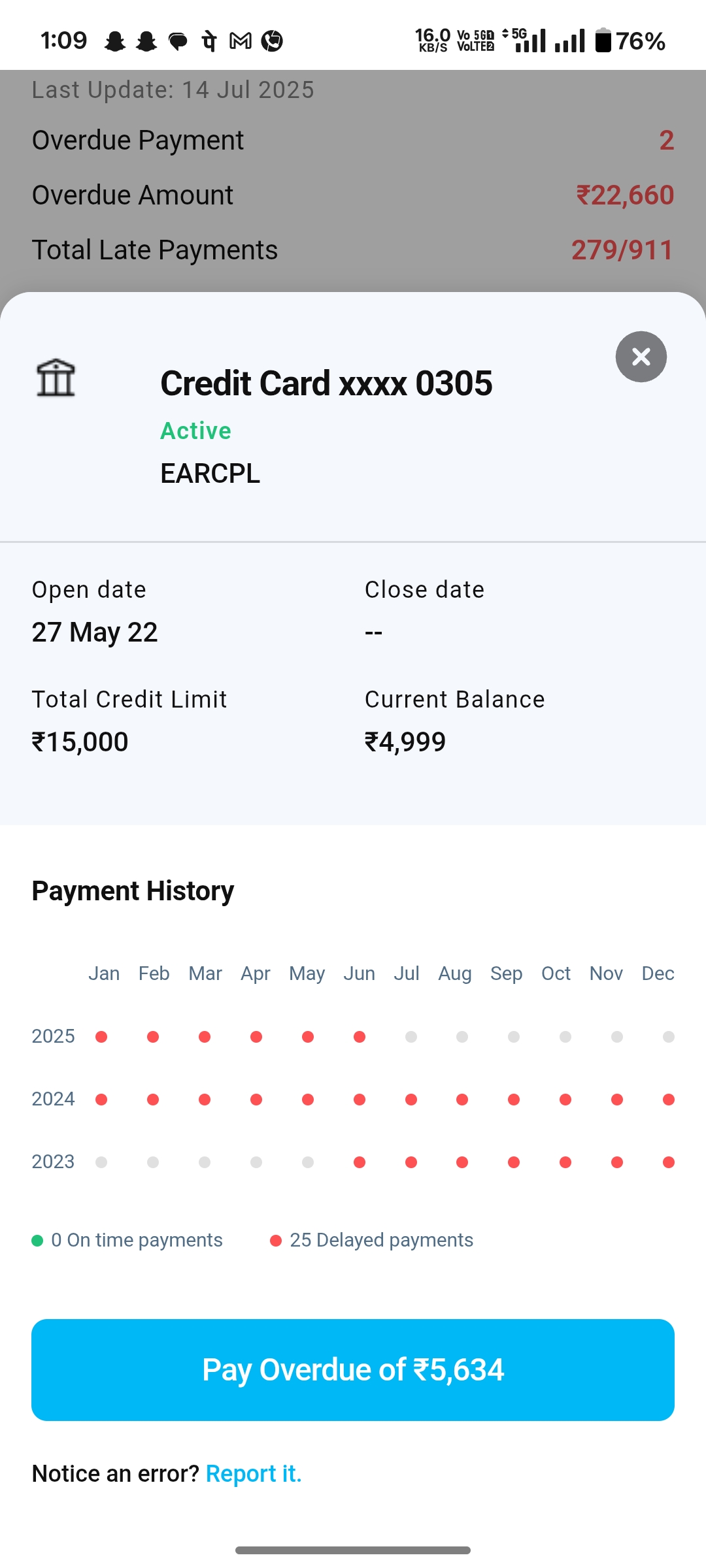 1. I don’t take any credit card of EARCPL company but showing in my cibil account please check and remove this credit card its empect on cibil score and showing multiple dues in my cibil report so please solve this problem my pan card no is BSQPA0780C