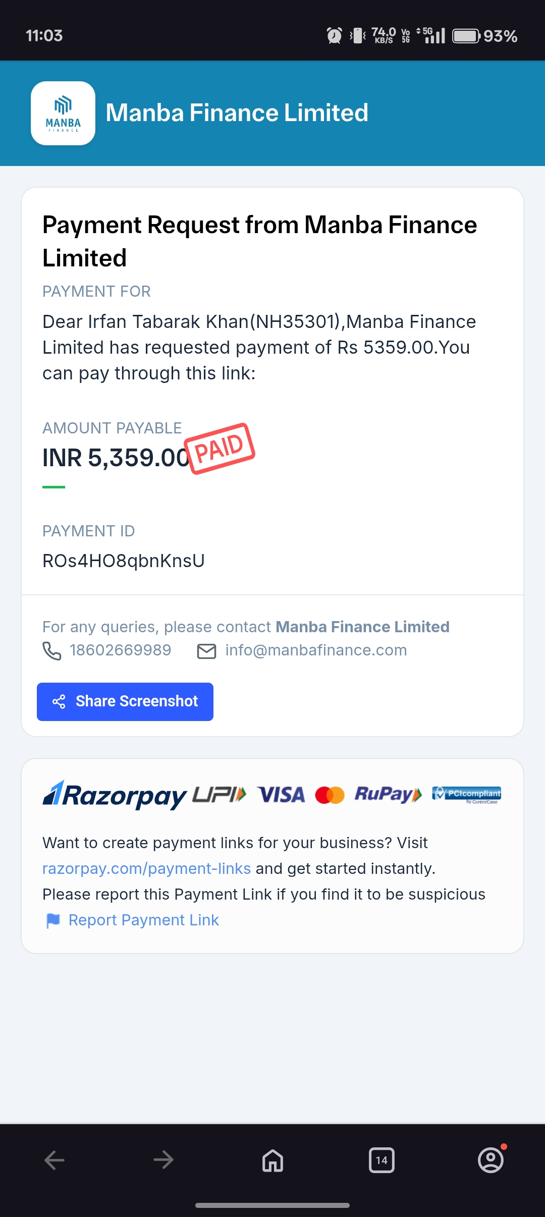 Last month my emi bounce then I paid october month 2 october clear last month emi paid then october month emi on date clear 5th October then why debit many times ecs charge and manba finance members whatsapp seen all my messages but not reply me ignore all msg please help me