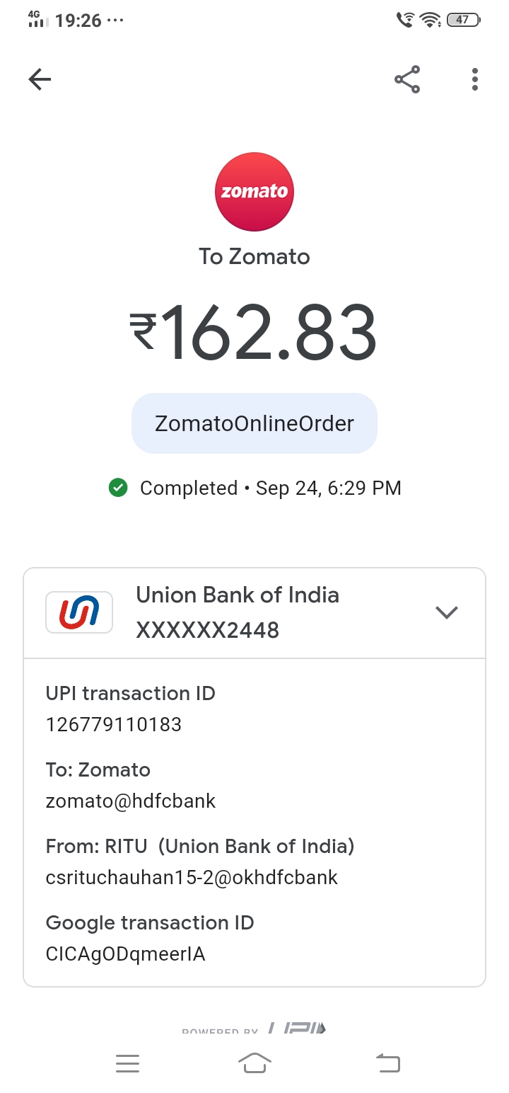 I have ordered one onion rava dosa which cost is 163 rs after applying coupon and paid via Google pay.