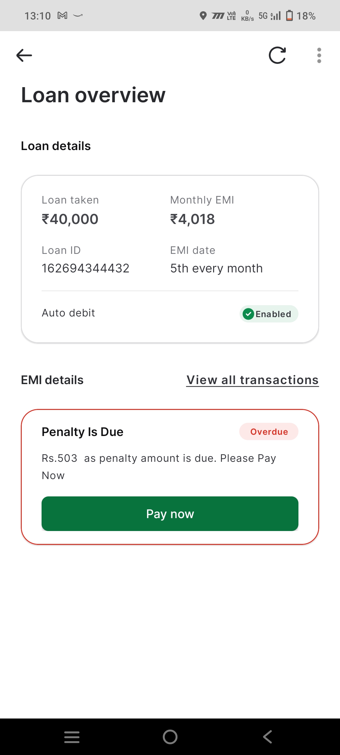 My name INTI PHANEENDRA SANJAY KUMAR, registered mobile number – 9908088415, Registered e mail id – sanjuqwq@gmail.com, LOAN ID – 162694344432. I took a loan through moneyview Loan App as it was a medical emergency,My monthly EMI date is on 5th but I am paying in advance on 5th,But it mentions that I am overdue for this month and shows me to pay an amount of 516 rupees, how did you pay me the extra amount, why should I pay?