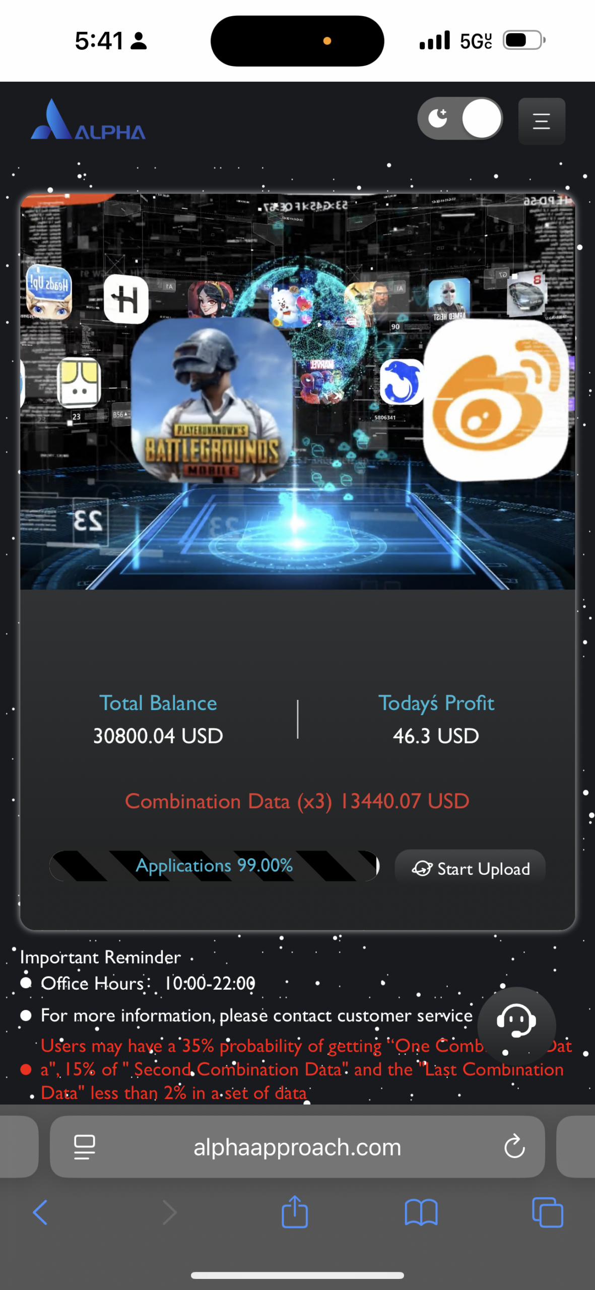 Alpha approach is a scam you should stay away from. They send you a test asking if you’re looking for a job they pretend to be staffing agents. Once you work they allow you to make $75 . Then will tell you that it is only $100 to get started so all you need is $32 to start. Then when you start they tell you that you will be uploading data your funds are used to purchase the data . Then you lose money once you pay and they see it’s a large amount the numbers keep getting higher and higher to where you can’t afford it . When I paid $686 to cover my amount it went up to $1597 once I paid the $1597 it went up to $3018 . Then once I paid the $3018 they are demanding $13,440. After this I knew it was a scam . Then they start talking about that you can get a loan to ask friends and family to help you . They add you to this WhatsApp group once you join . With the fake customer service.