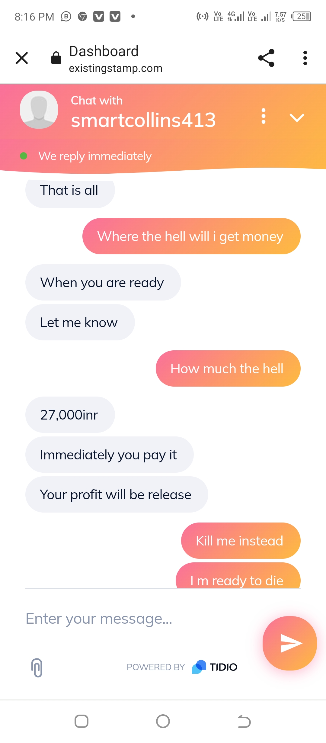 There is fake investment platform in telegram account named crypto currency option trading they tell u to invest 10000 they will show 100000 profit and tell them to processing fee of 50000 then they will profit 500000 again will ask for approval fee this goes on continuing