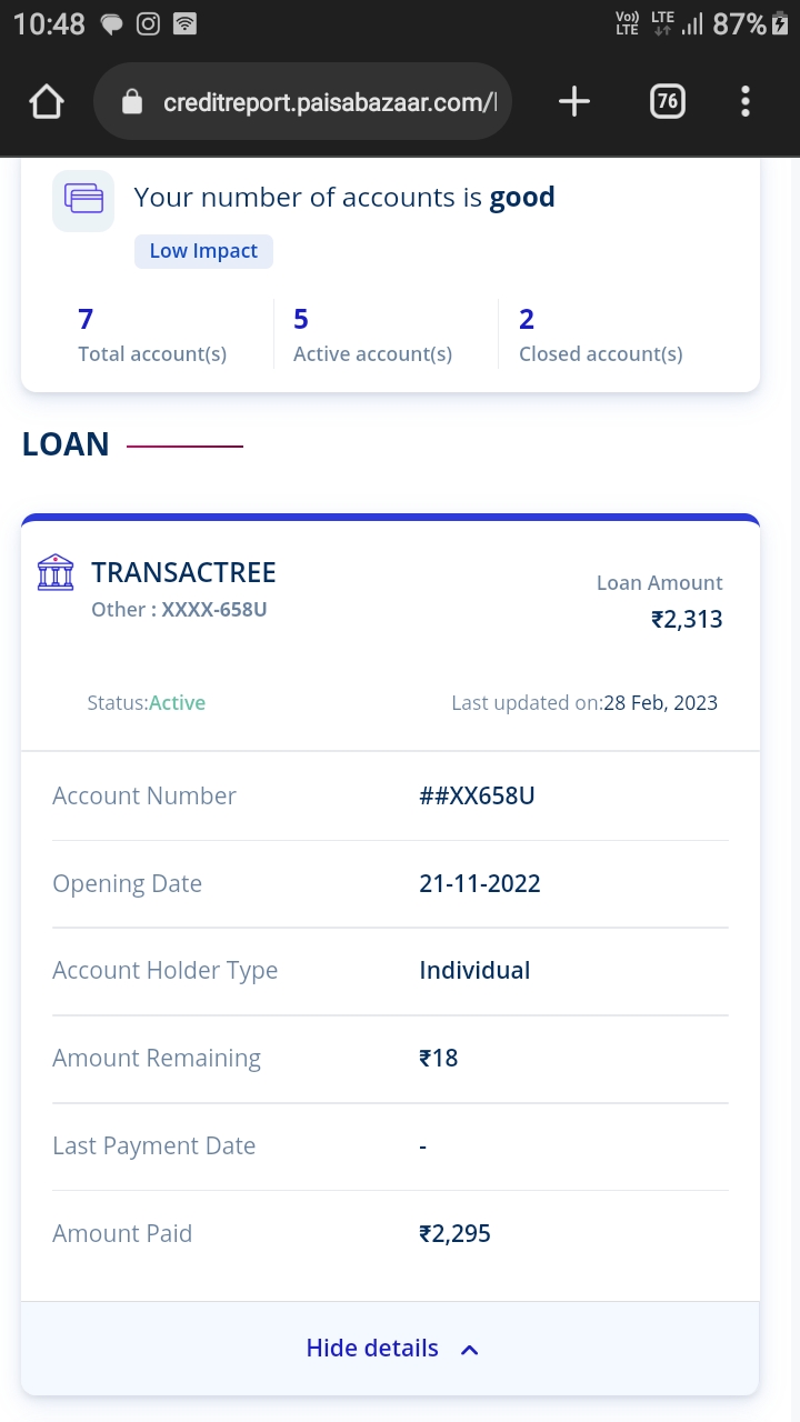 when I check my credit score on CRIF it shows that, I had loan in “TRANSACTREE TECHNOLOGIES PRIVATE LIMITED” for Rs:-2313 and that amount is not debited nor credited so I ignored, But today I got my cibil dropped, so it suggested to close unused loans after. When I searched for this company name in google there is no possible way to contact them got results of some apps in google but I’m sure I haven’t installed those apps till now nor I knew these apps there for loans my concern is without doing any kyc how I got that loan & I want to close that loan account. Now checking how other peoples also got loan from this even though they didn’t opened.