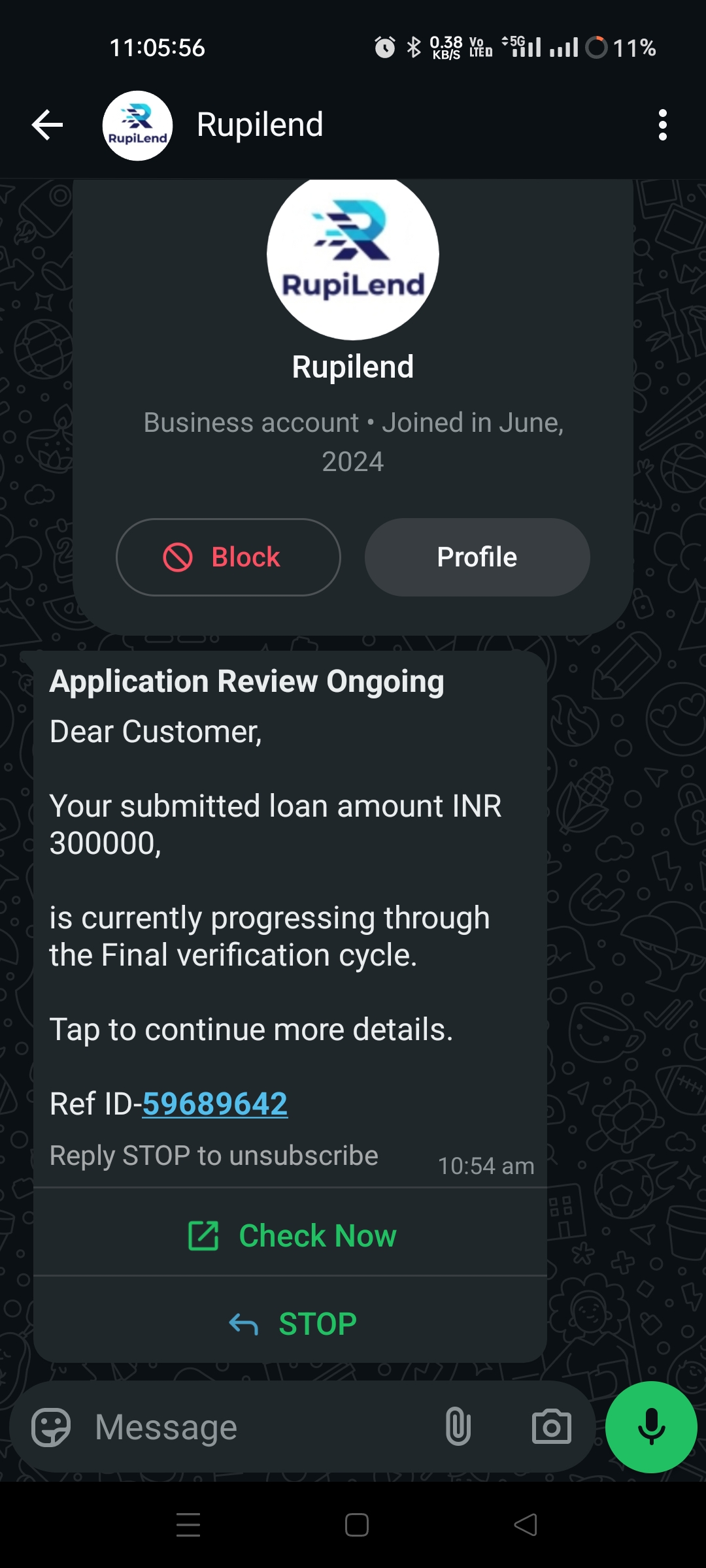 I got a message about getting approved for a loan from a business account names rupilend in WhatsApp.i never applied for any loan and i don’t know how they got my number