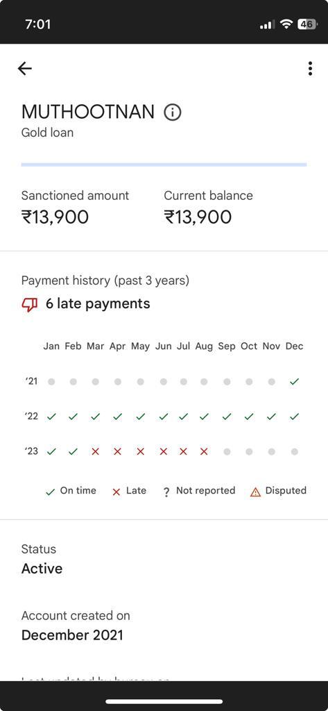 I have never taken a loan from Muthotnan, however it is reflecting as if I have taken a loan of Rs 13,900 and also listed as six late payment since Mar 2023 till Aug 2023 and payment made from Dec 2022 till Feb 2023.