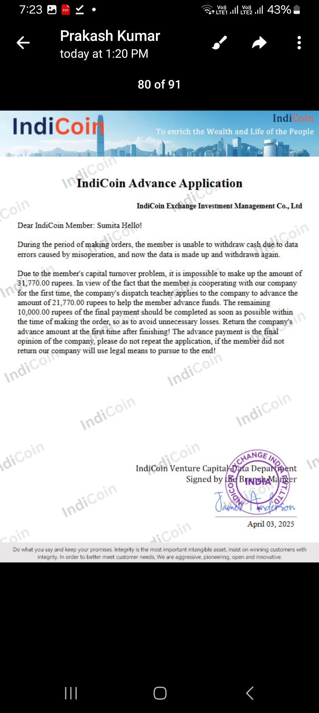 Hi, indicoin private limited company h jime bahut sare logo ko fasaya h mujhe bhi paese kamneka. Ye log group m kaam kar rahe h or hamesh paese le rahe h please quick action liya jaye. Fake loan de rahe h jabki bola bhi nahi chahiye. Error bolker paese mangte h maine bola m galat nahi ki jesa apne steps bole same kiye pheer bhi loan diya. Please m nahi dungi paese mana kiya to jardasti Error bolke loan diya. Government action le. Image bhi sab h .