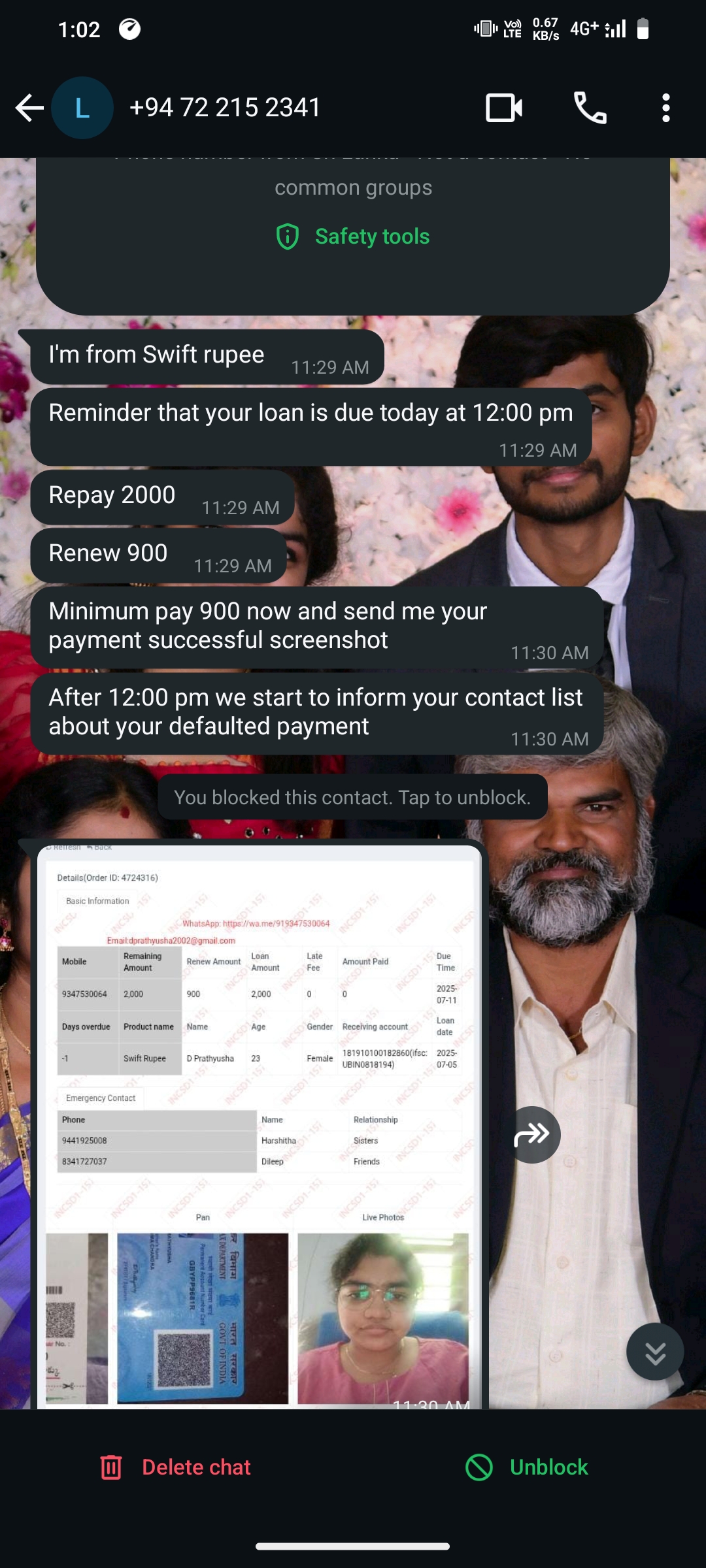 I have never taken any loan from swift loan app but getting messages to repay loan and due date along with my original details like my pic , pan card and contact list