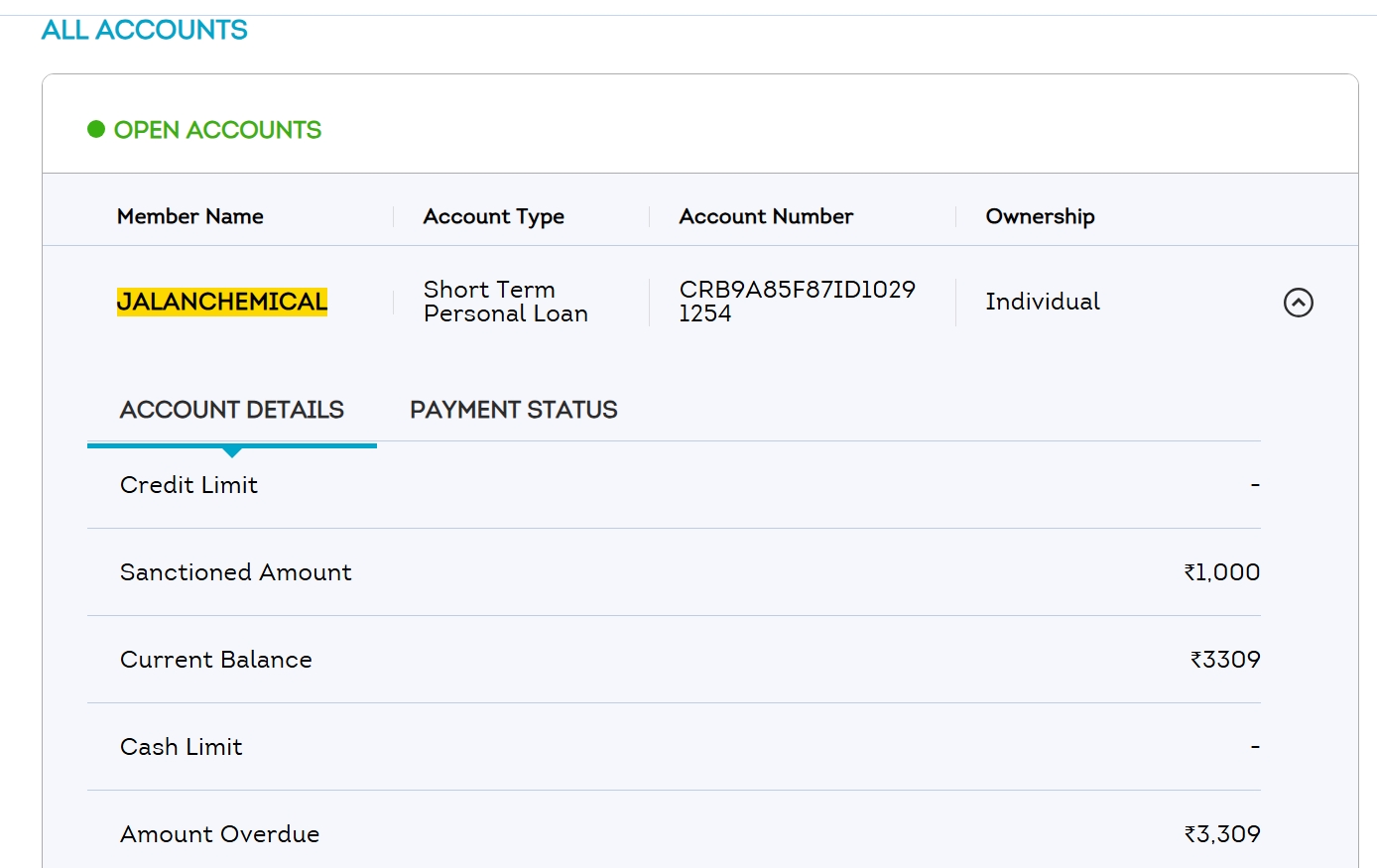 I never take any kind of loan from this company. But when i checked my cbil score there 2 accounts are showing from JALANCHEMICAL. I have also download the mpokket app from my current mobile number.But there also not showing any kind of loan against my mobile number. Please take appropriate action and remove it immediately.