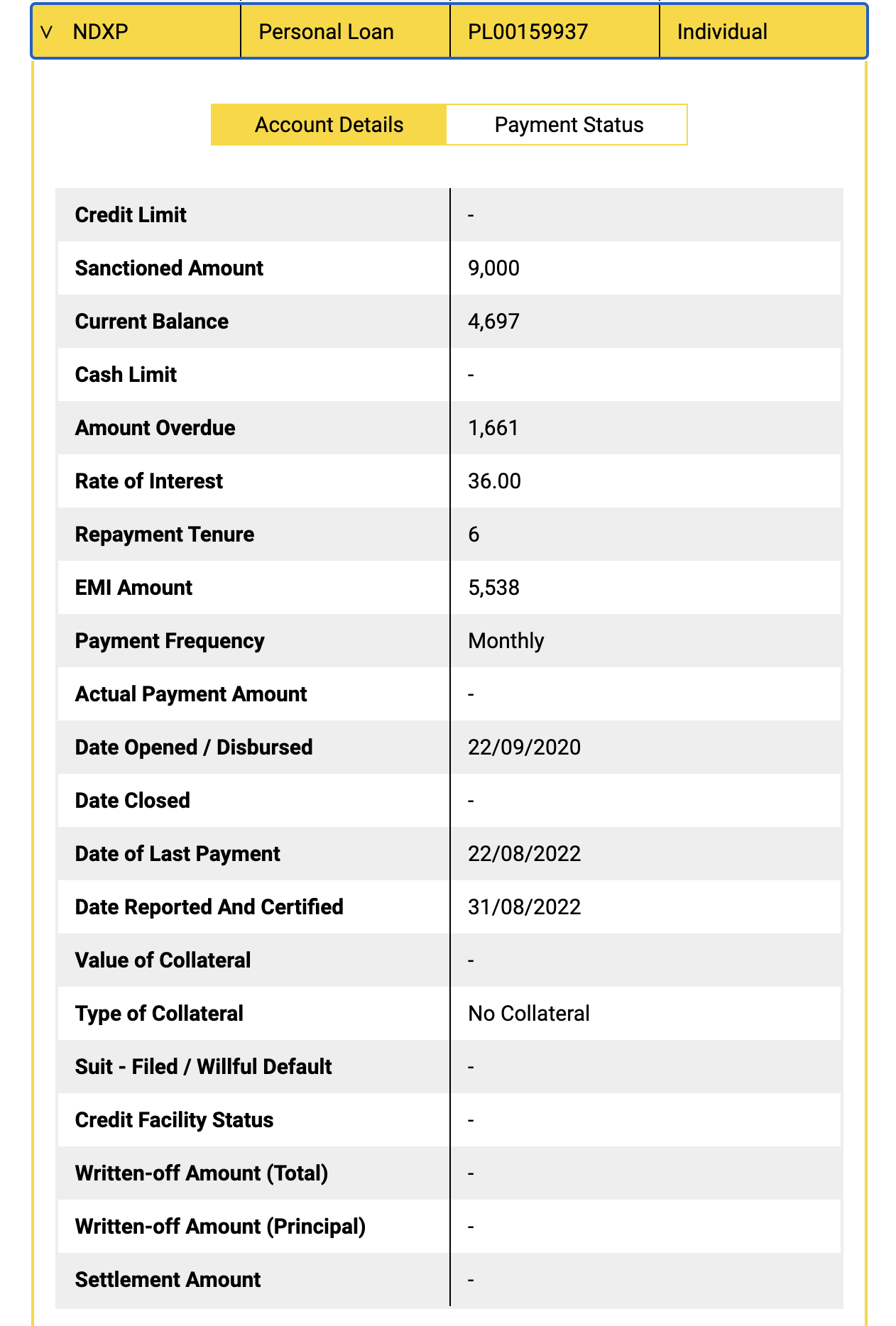 I have not taken any loan and never get in touch with NDXP company. But When i check my Cibil report its showing me loan amount 9000 which i have never taken and even approached. Which is impacting my cibil record and this is not acceptable at all, i have never applied for this loan.
