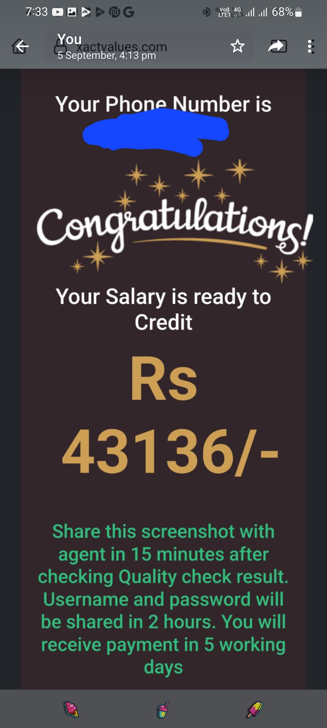 I waited for 1 day again i recived a message that if you want your salary go to the link and enter the details in their website.
