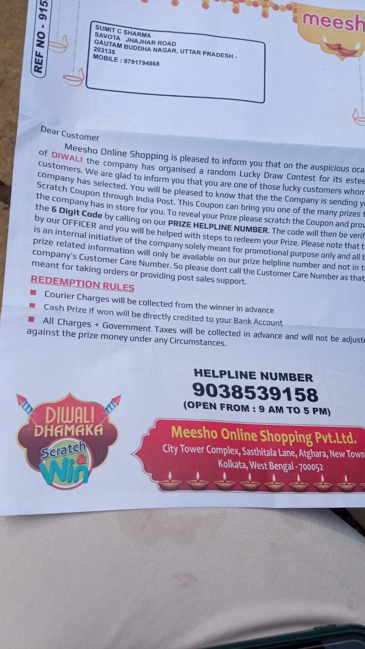 It’s regarding the lucky draw on meesho