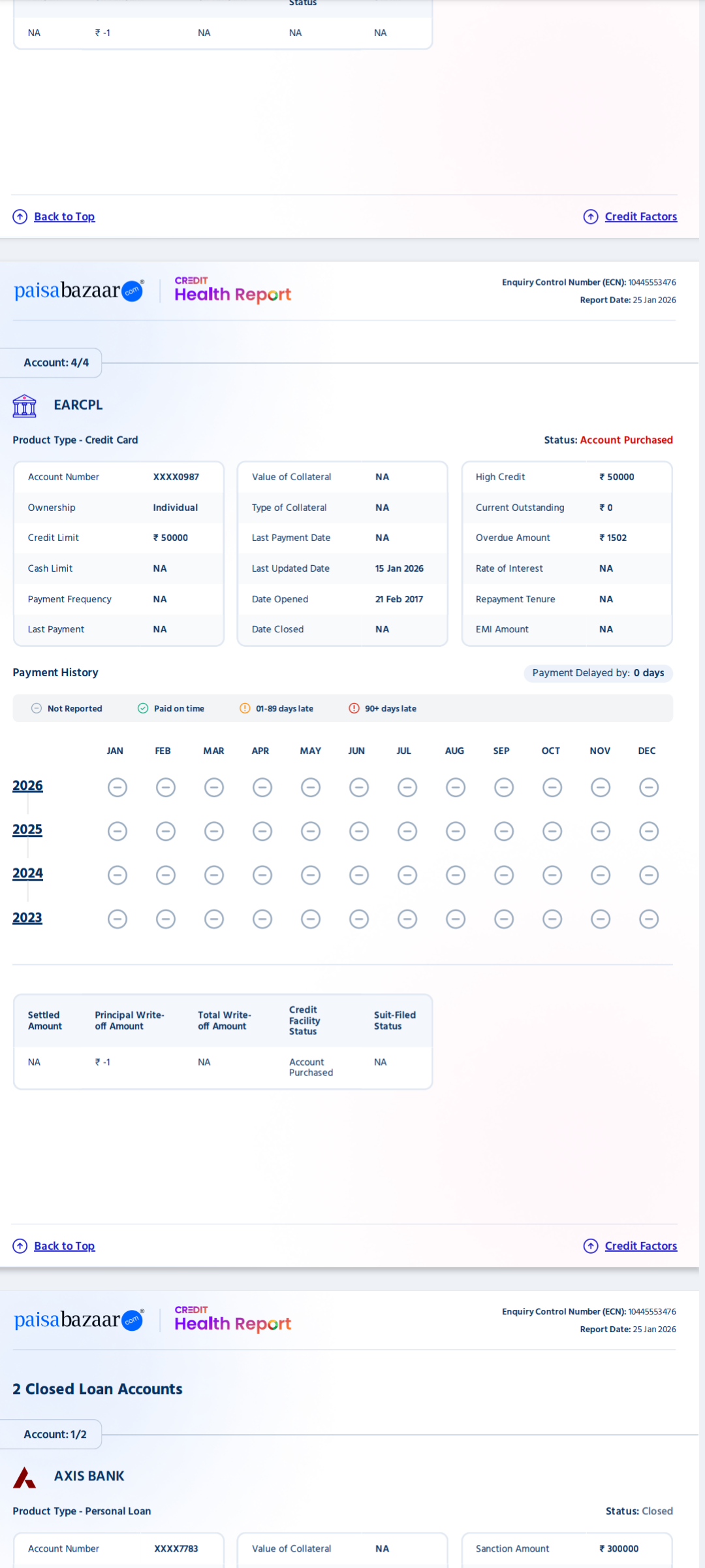 I have observed that incorrect entry showing in my CIBIL score from EARCPL, i have not taken any credit card or services from EARCPL, need your support to remove from my CIBIL.