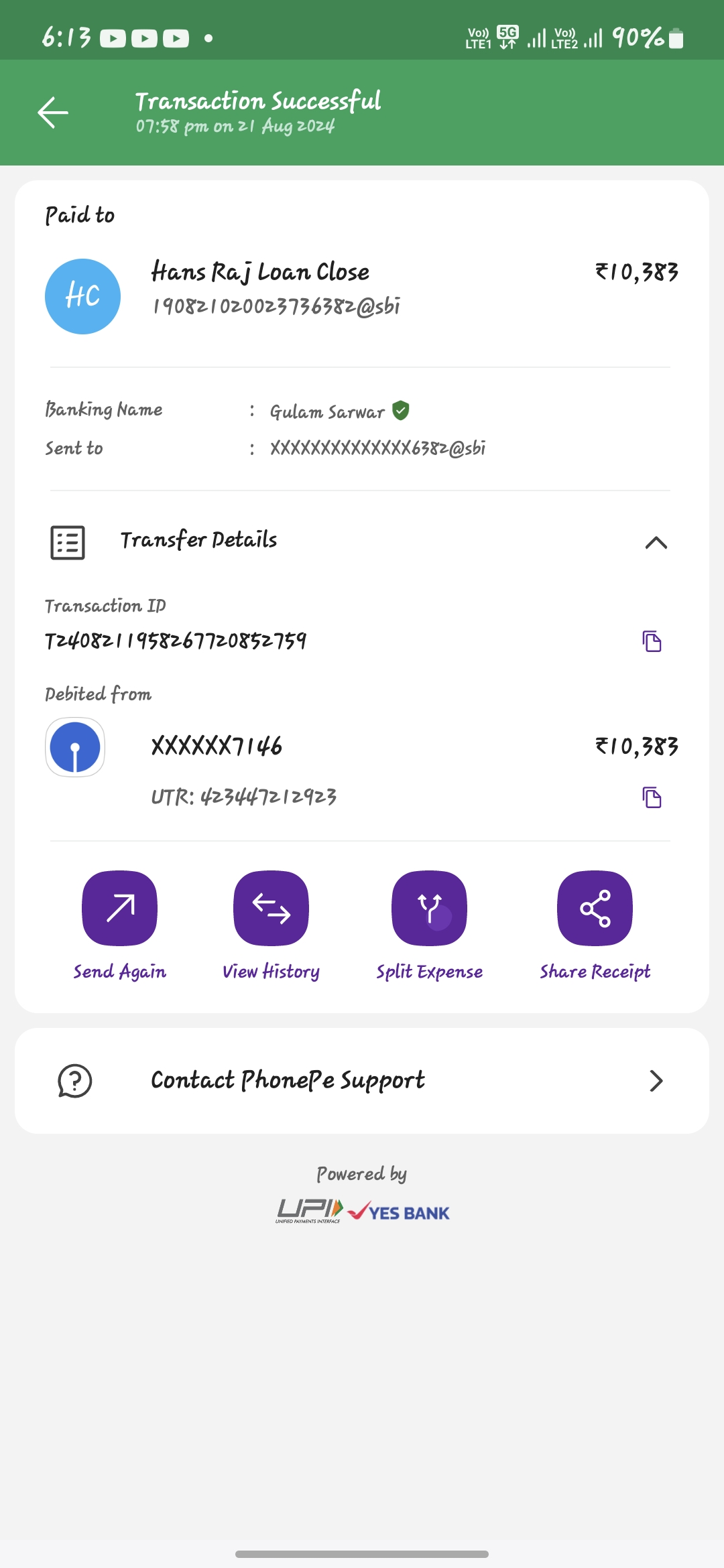 Member Name – PCFIN CEASE – TERMINATED Account No.- 190821020023736382
