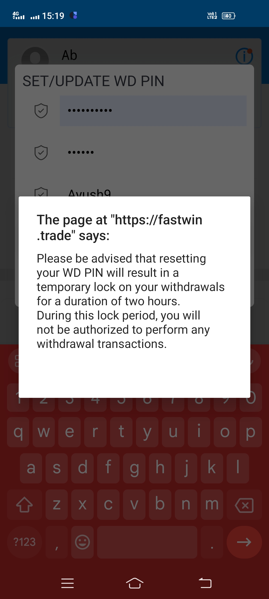 Sir I want to withdraw my winning money through fastwin but I am not able to withdraw my money due to WD pin being created