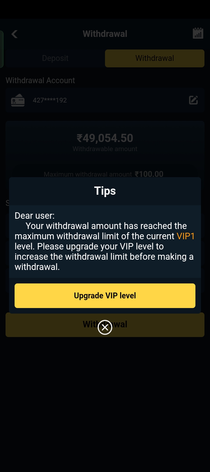 मैंने FateFunTrio ऐप पर गेम खेलकर ₹49,054 कमाए हैं। लेकिन जब मैं withdrawal करने की कोशिश करता हूँ, तो ऐप कहता है कि मेरा VIP लेवल अपग्रेड करना पड़ेगा, तब ही मैं पैसे निकाल सकता हूँ।