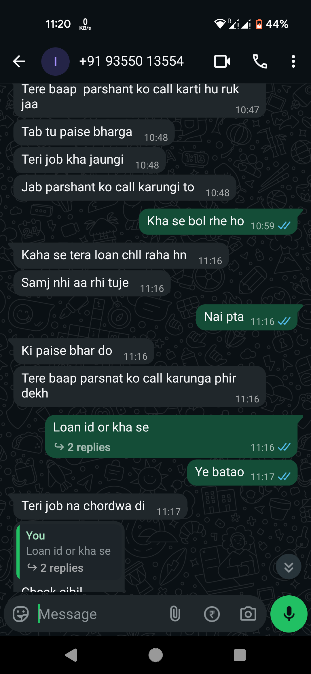 I took loan from FIBE in 2023 and couldn’t pay tha loan due to job loss for more than 3 months and I asked them to provide me time but they used to harrass me continuously and now I joined another company and they are calling anyone on my behalf and harrassing them and sharing my personal information as well..they are harrassing me on WhatsApp as well