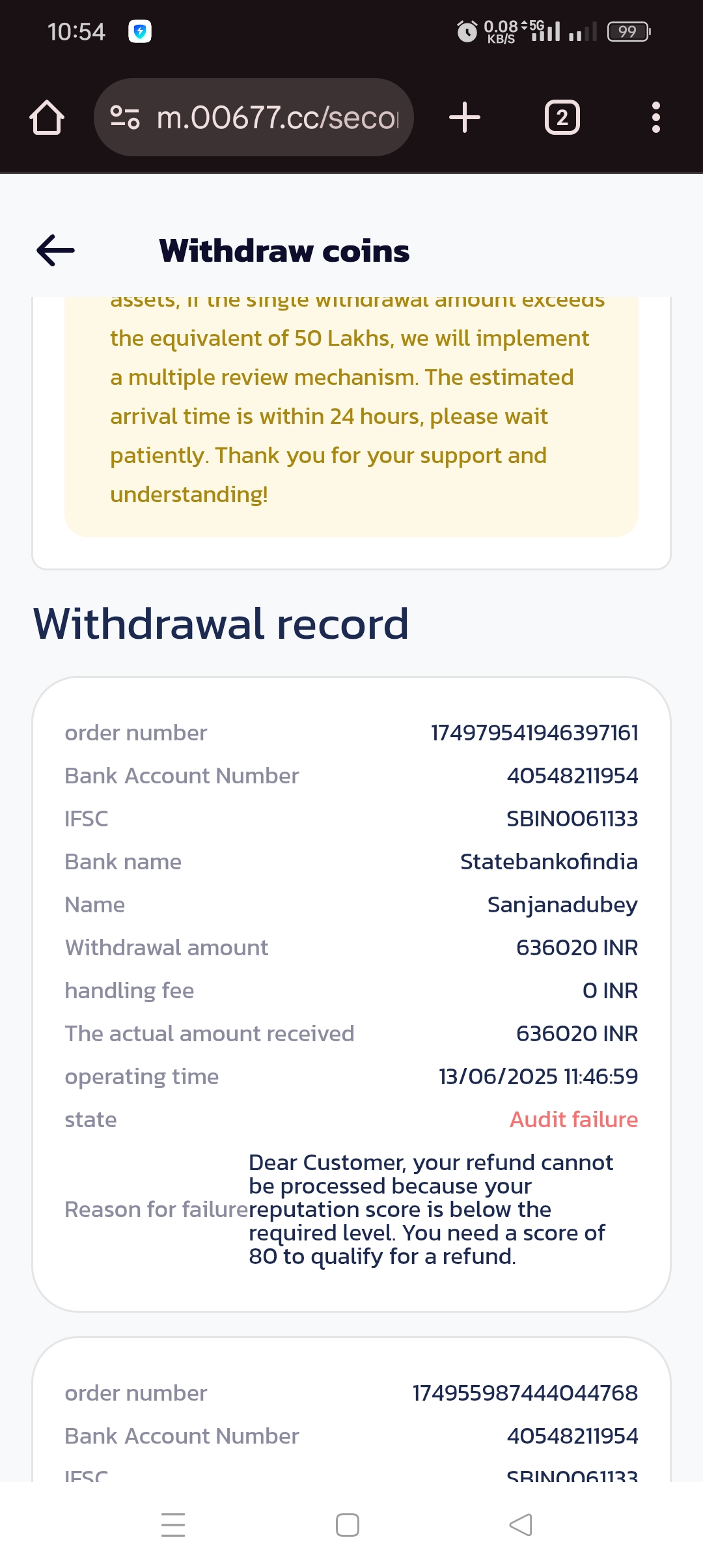 I have paid Rs 4,64000 until now and I want my money back. Now they are asking me Rs. 295000 to open large account for money withraw in my amount and allowing me to withdraw