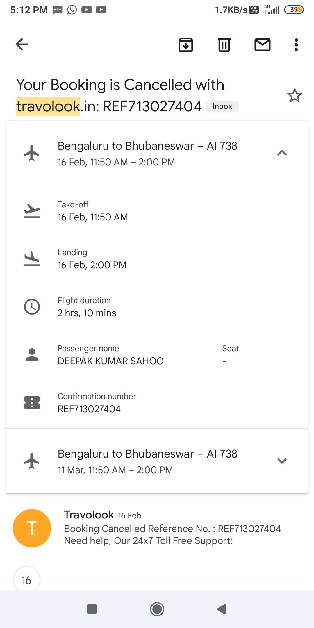 Date of 16/02/2022 i was booked flight from banglore to Bhubaneswar by travoolook.in website i have paid the money from account but ticket not booked they have send mail ticket got cancelled you will get refund money back in 7working days . But 3 months over and i called them more than 50 times they are telling only one dailog you will get money refund in 3-4 working days but still I have not received the money.this is humble request you please help me to get money back.